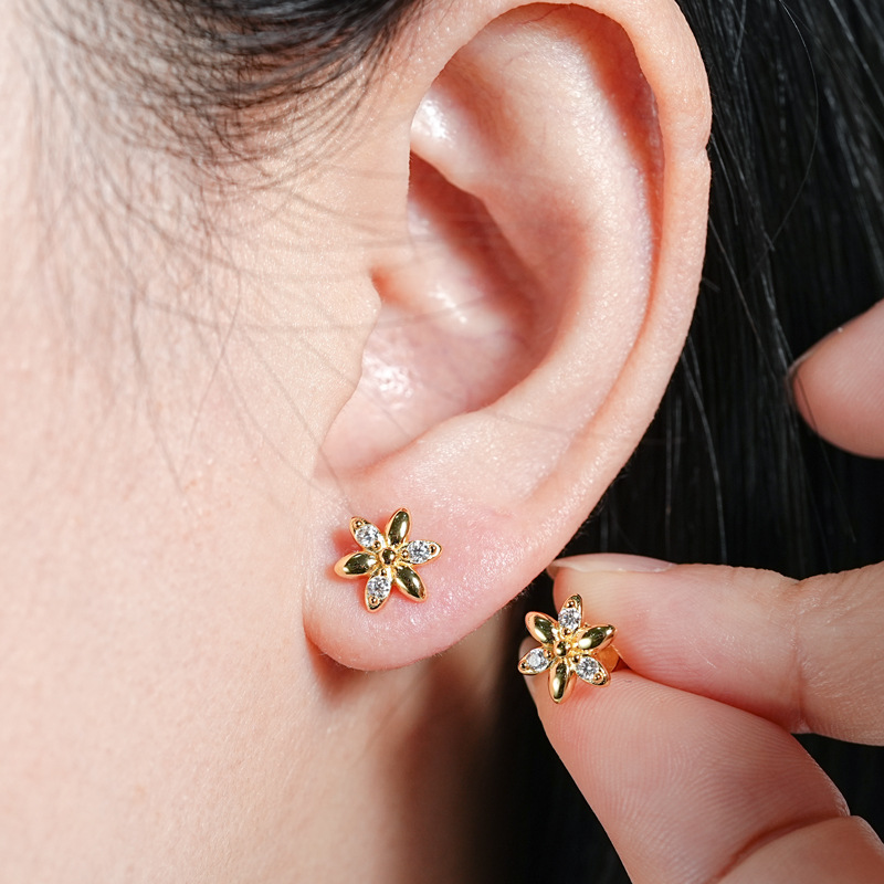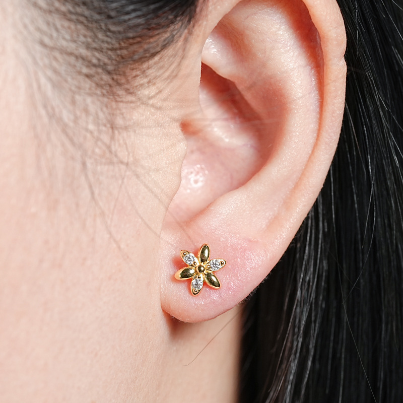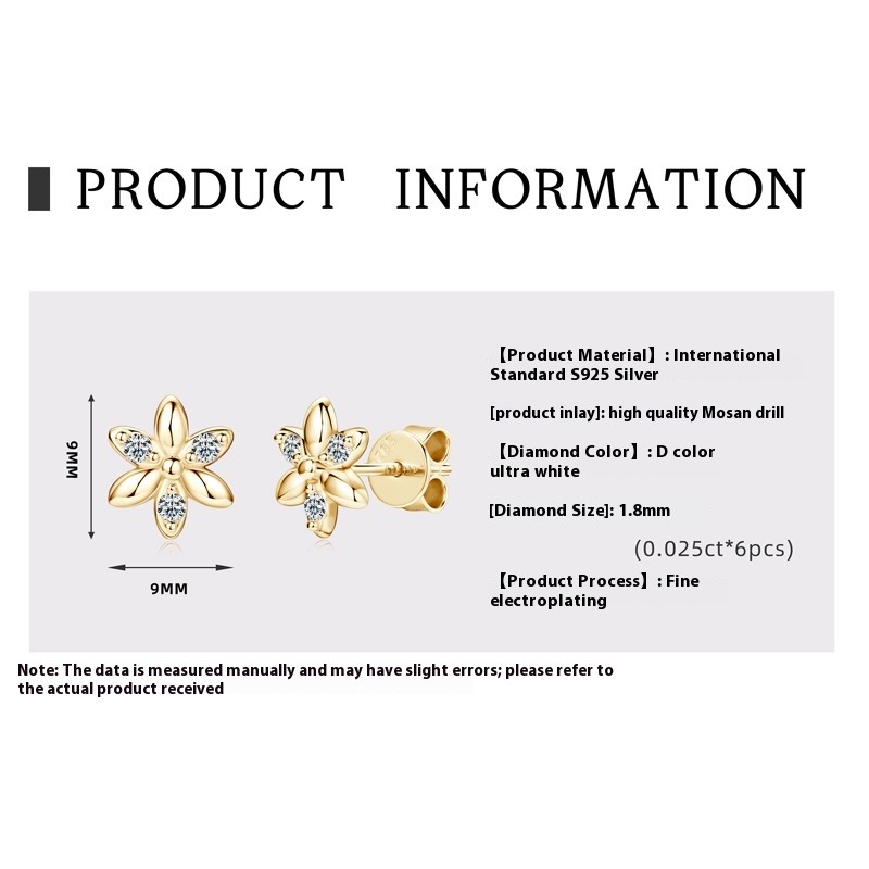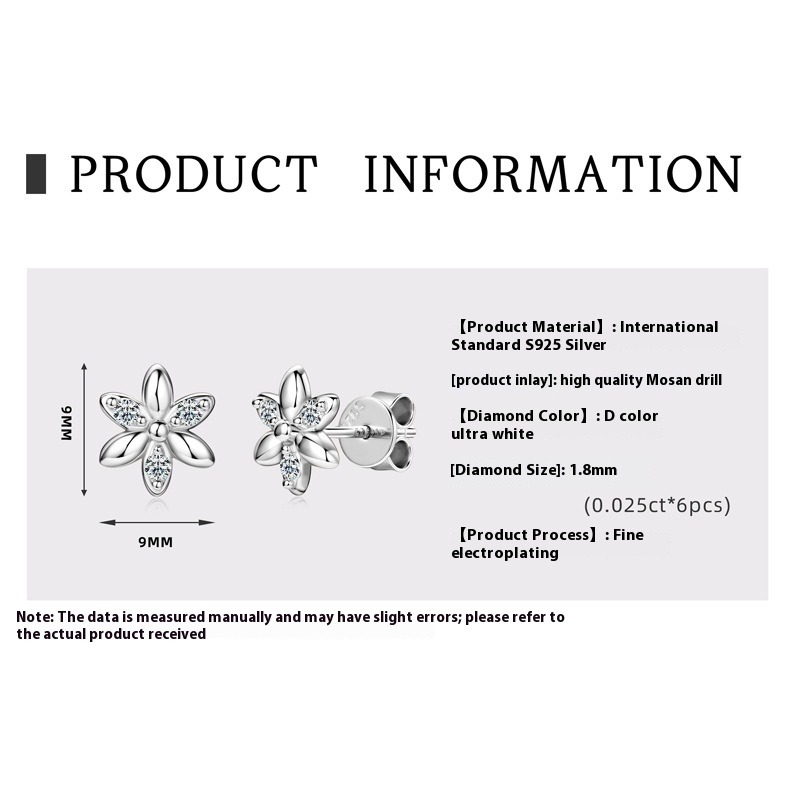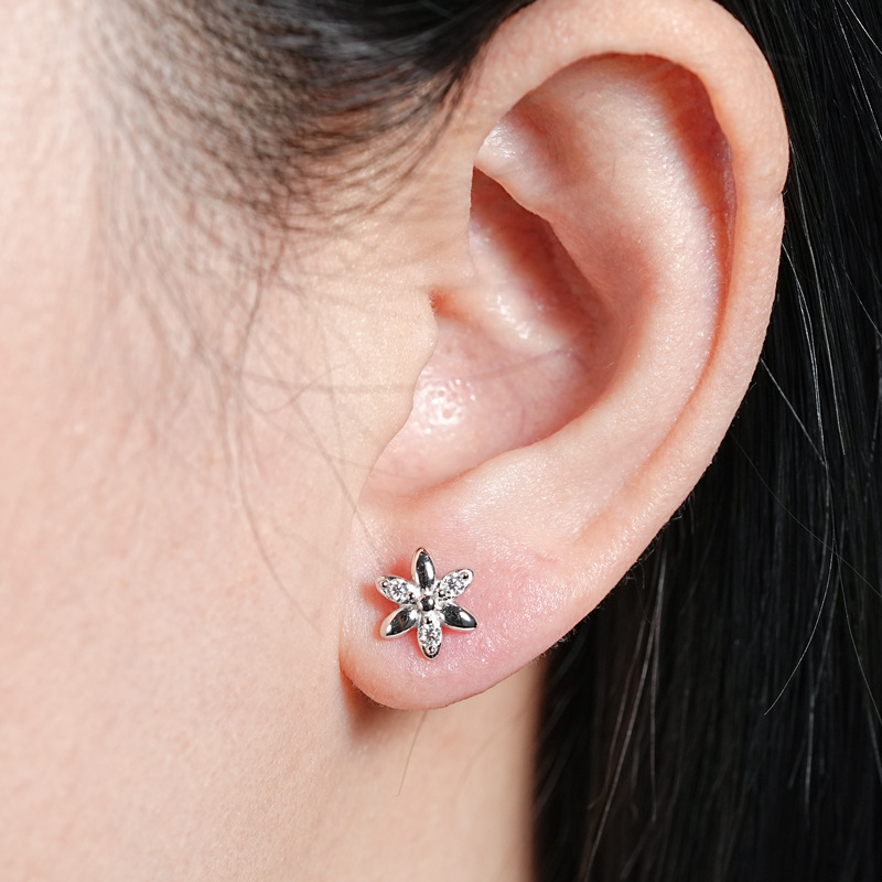 Mini-Blumen-Moissanit-Ohrstecker - S925 Sterling Silber Zarter Sommerschmuck