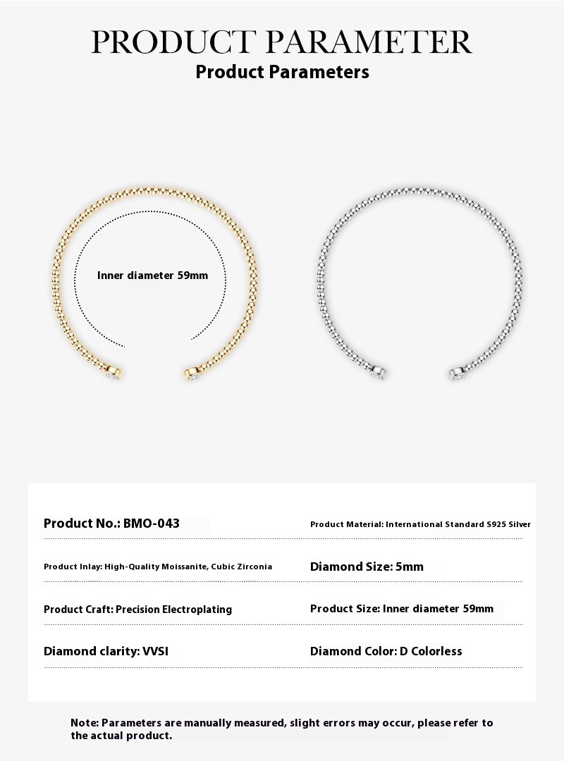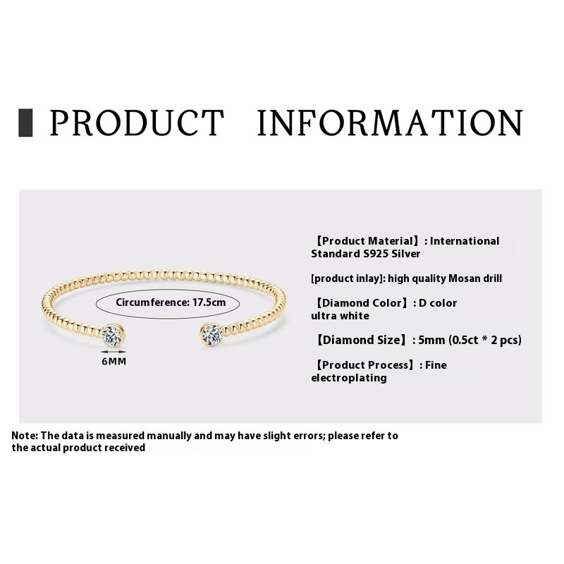 Offenes Armband mit Moissanit in D-Farbe – S925 Silber, 18 Karat vergoldet, stapelbarer Schmuck