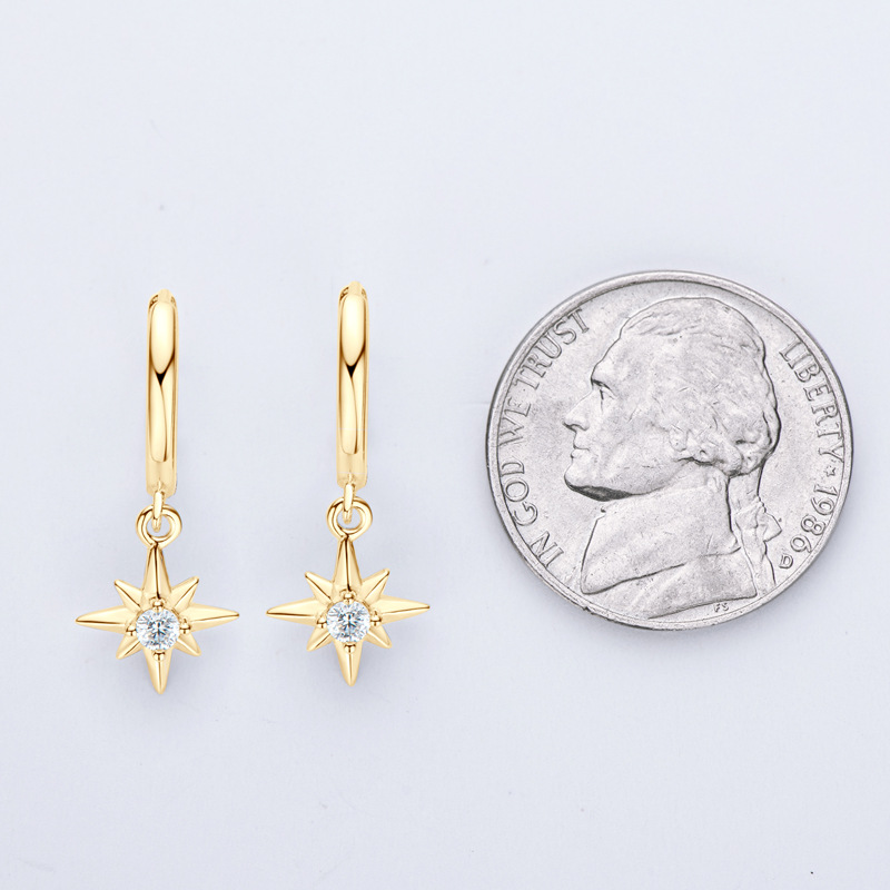 S925 Sterling Silber 18K vergoldet Hexagramm Gypsy Ohrringe - Bohemian Style