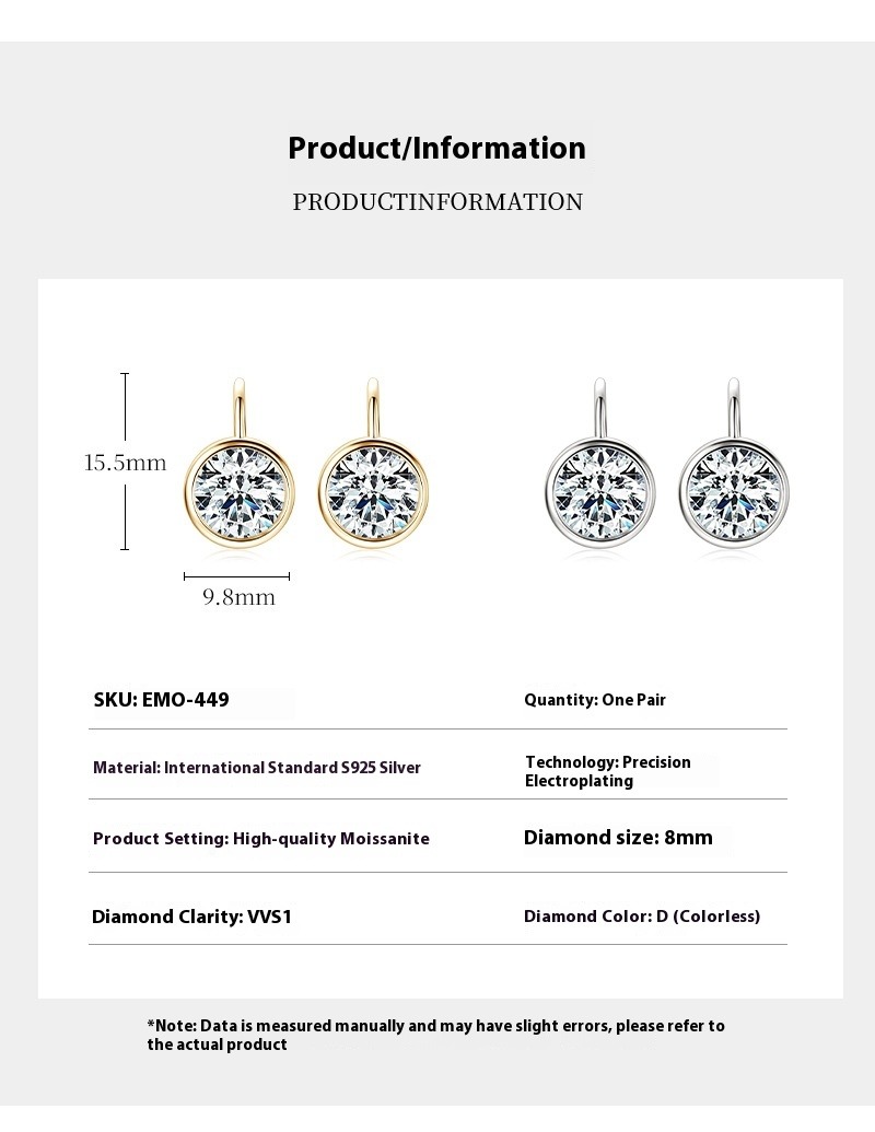 S925 Sterling Silber 2 Karat D-Farbe Moissanit Ohrstecker - Minimalistisches Design