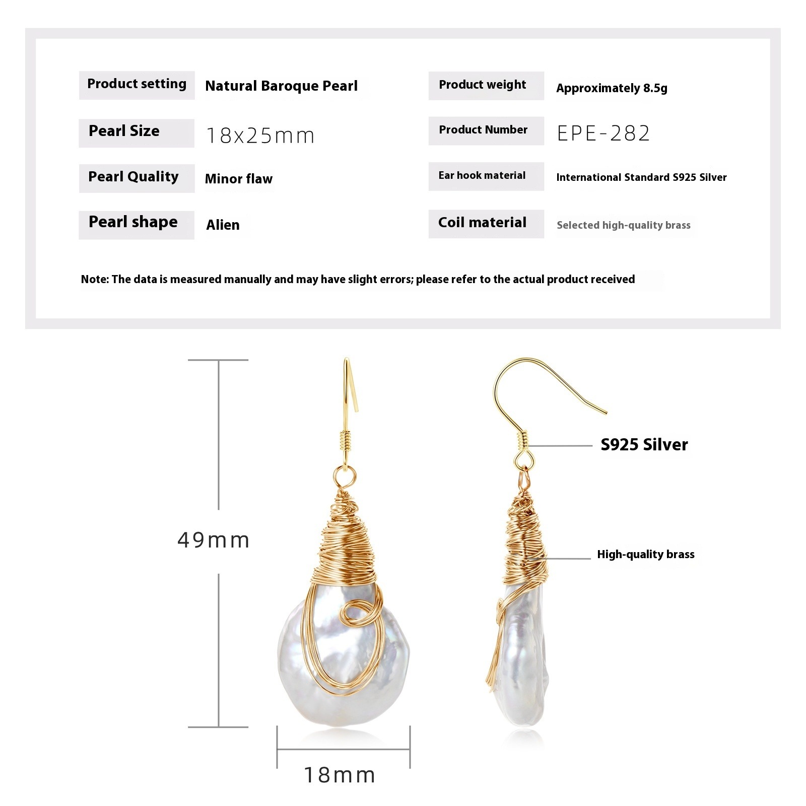 S925 Sterling Silber Barock Perlen Ohrringe - Vintage Europäischer Stil Natürliche Süßwasserperlen Tropfen