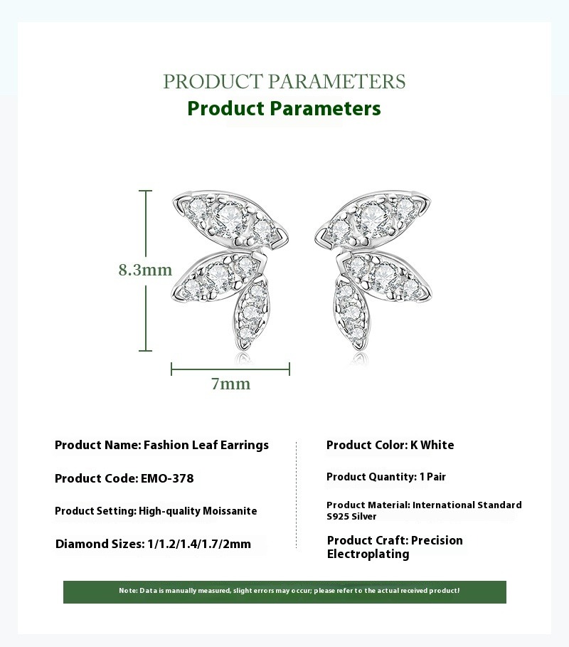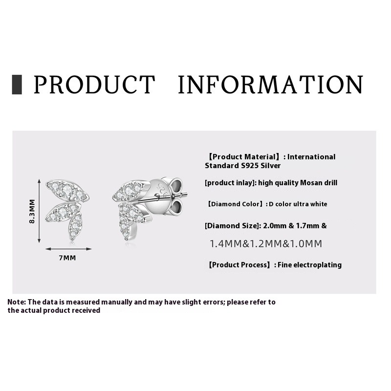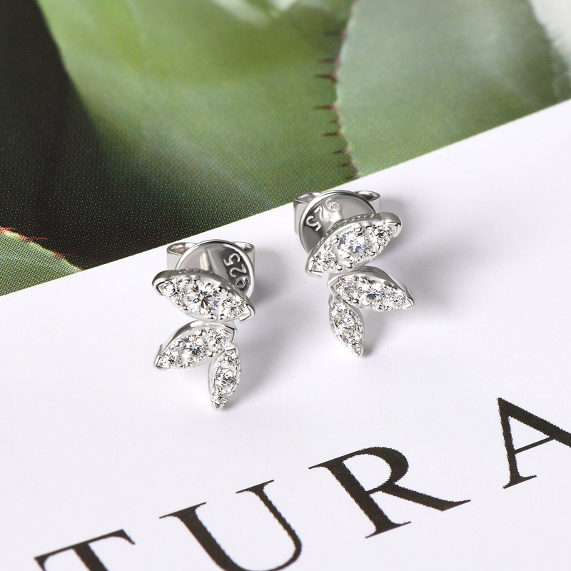 S925 Sterling Silber Schmetterlingsflügel Moissanit Ohrstecker - Zartes Blattdesign
