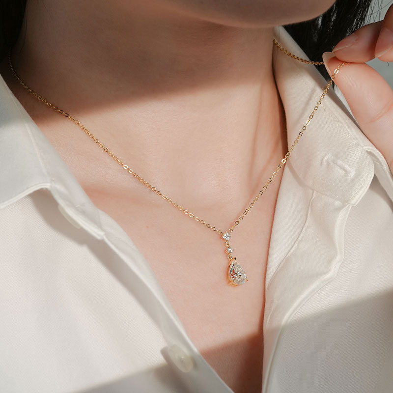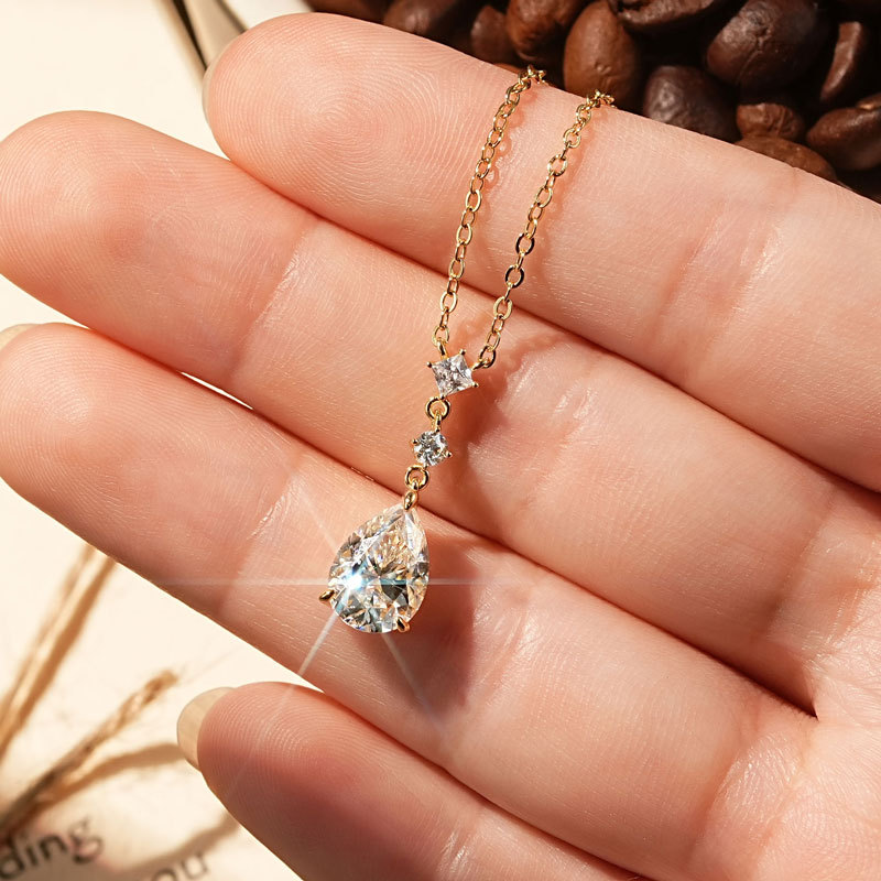 S925 Sterling Silber D-Farbe Moissanite Wassertropfen Anhänger Halskette