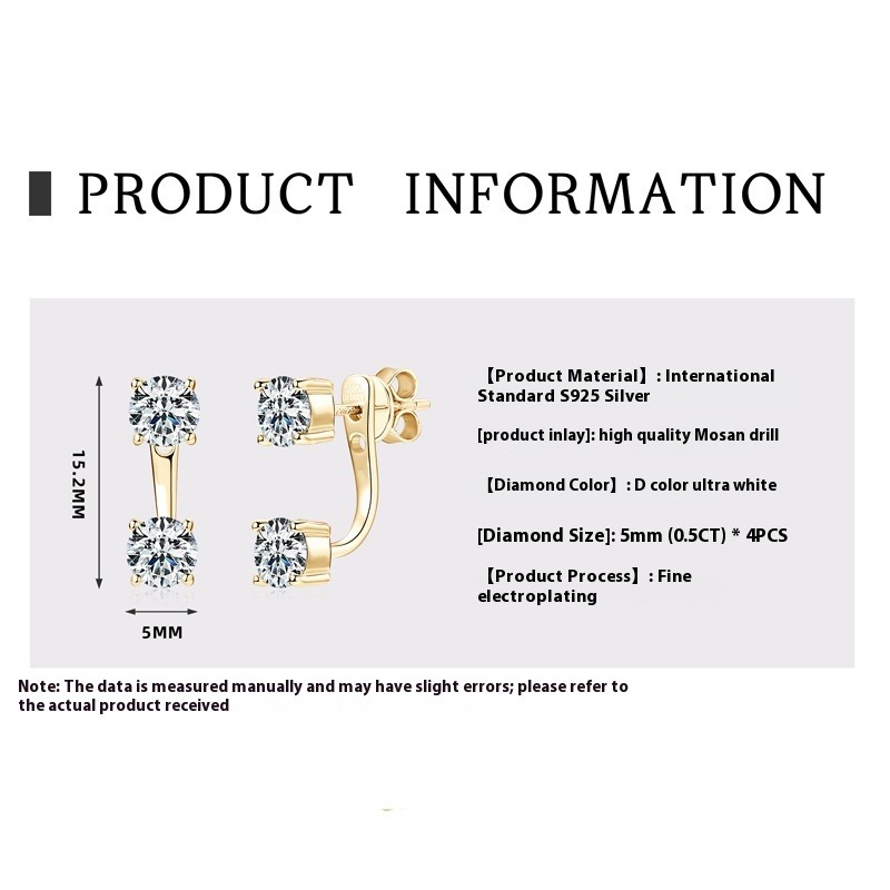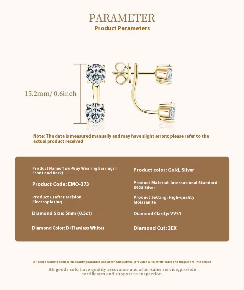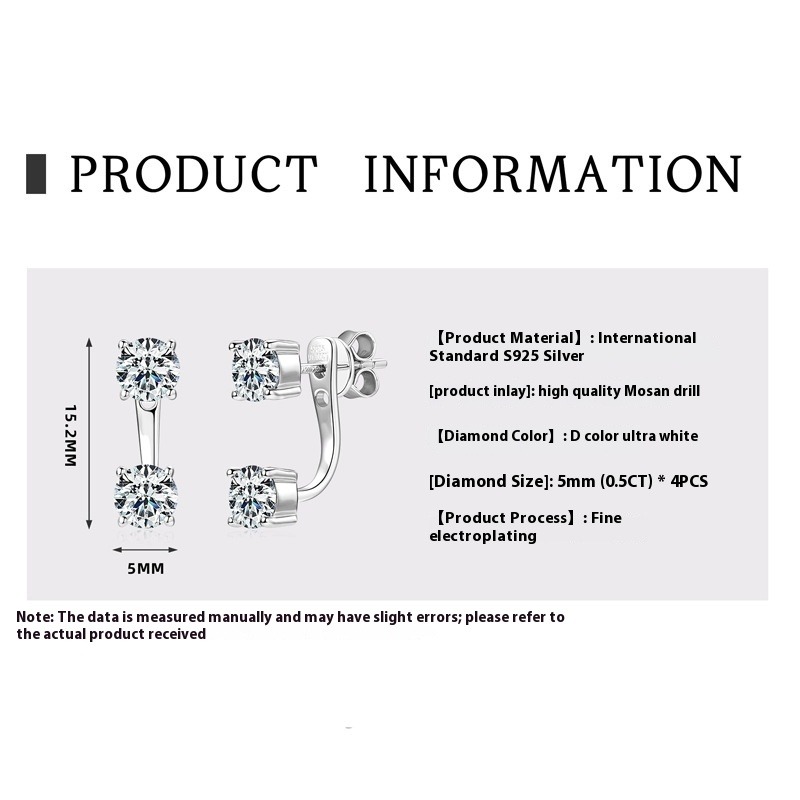 S925 Sterling Silber Double Wear Moissanit Ohrstecker - Vorder- und Rückseite Design