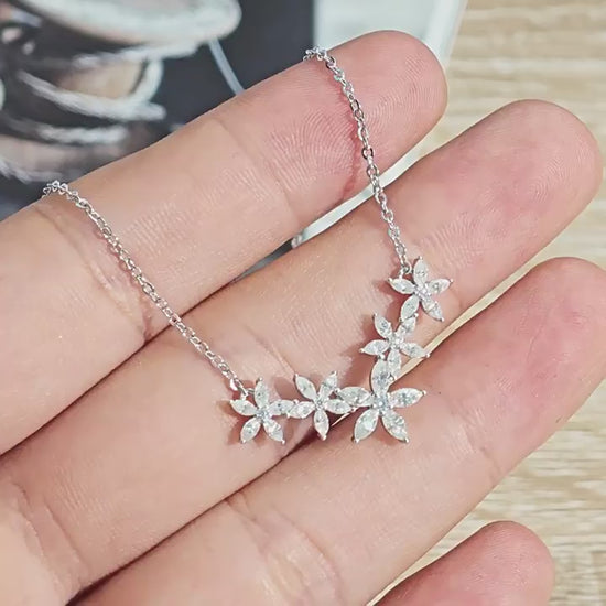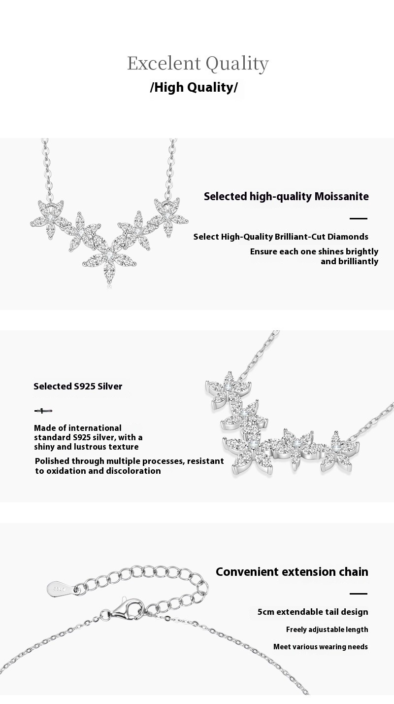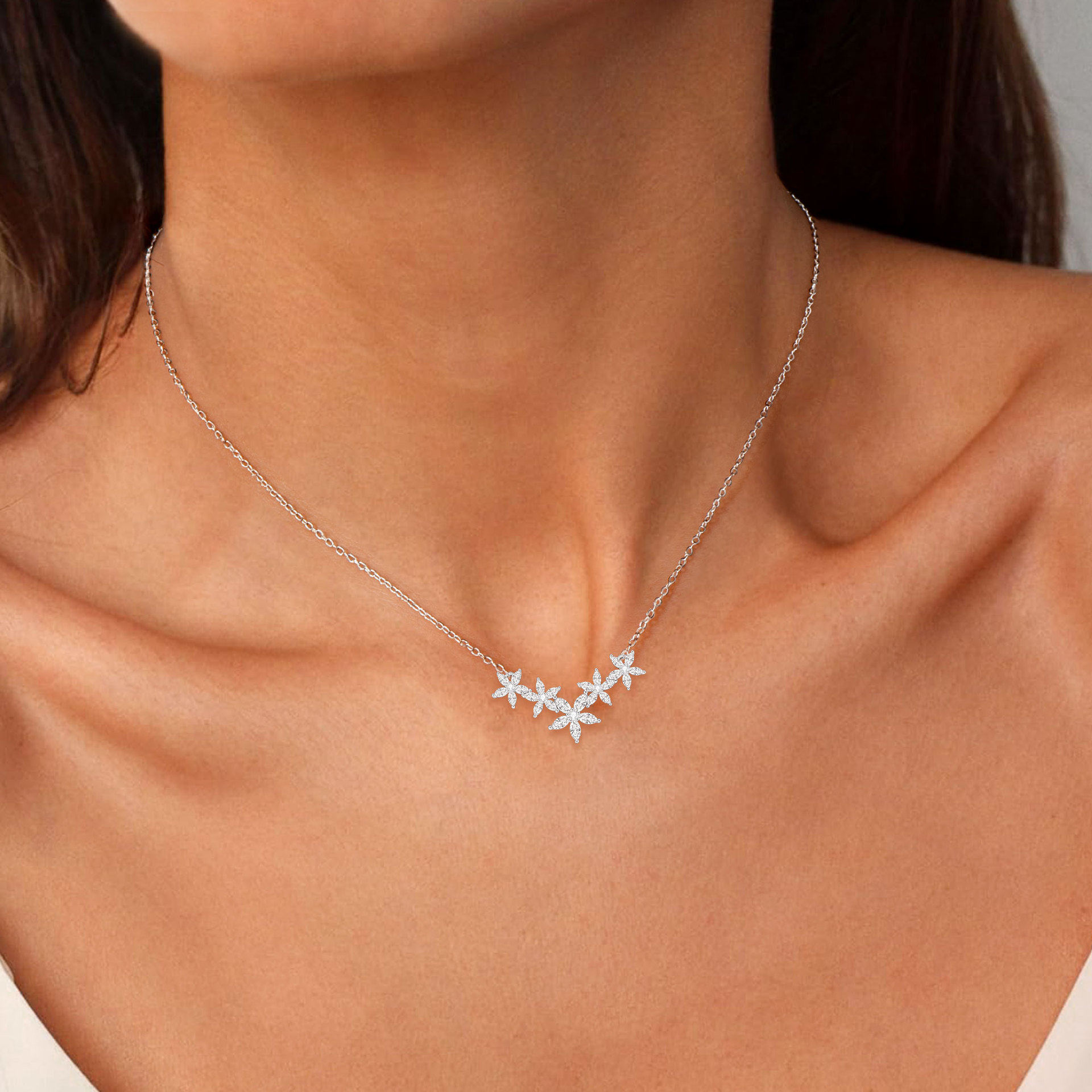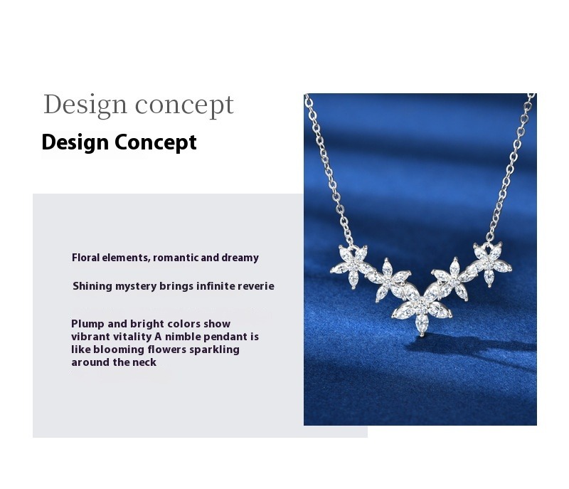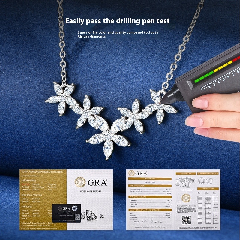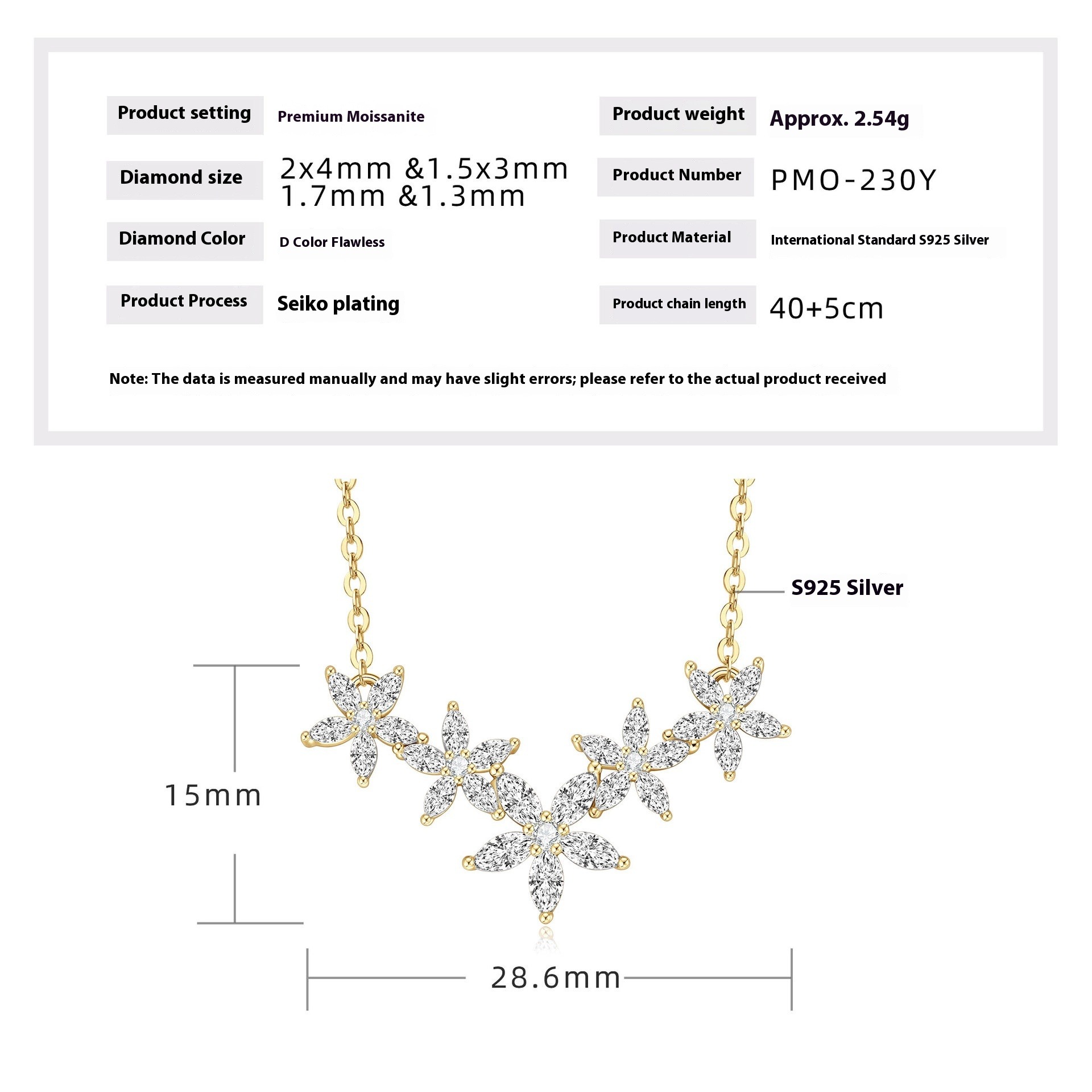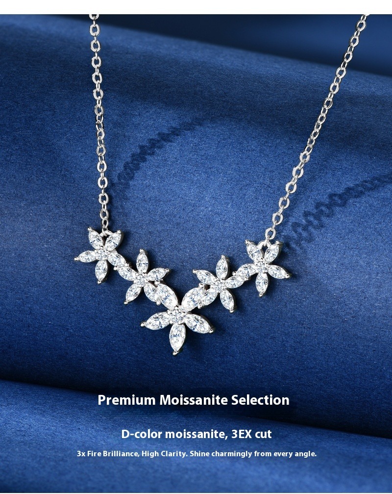 S925 Sterling Silber Fünf Blumen Moissanit Halskette - Eleganter Blumenanhänger