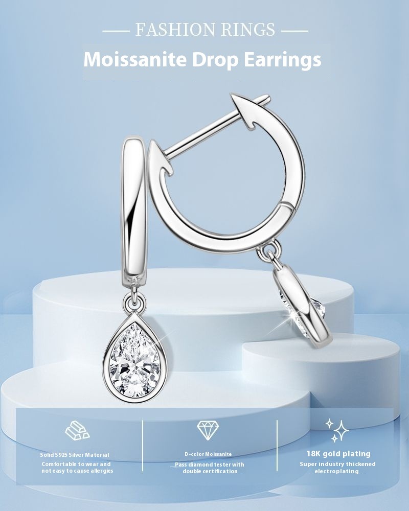 S925 Sterling Silber Moissanit Wassertropfen Ohrringe - Fransen Design