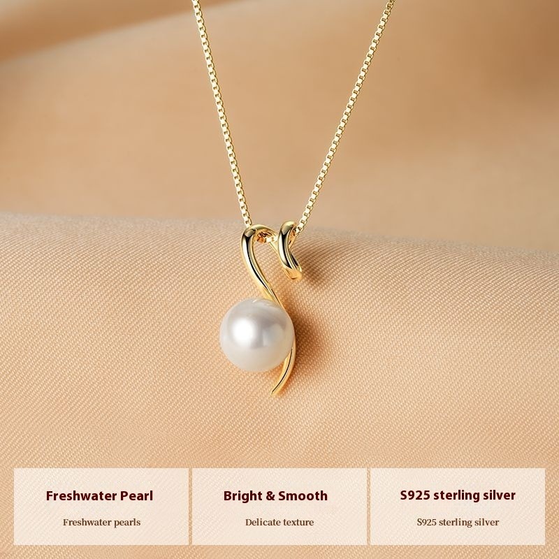 S925 Sterling Silber Natürliche Süßwasserperlen Halskette - Minimalistischer Einzelperlen Anhänger
