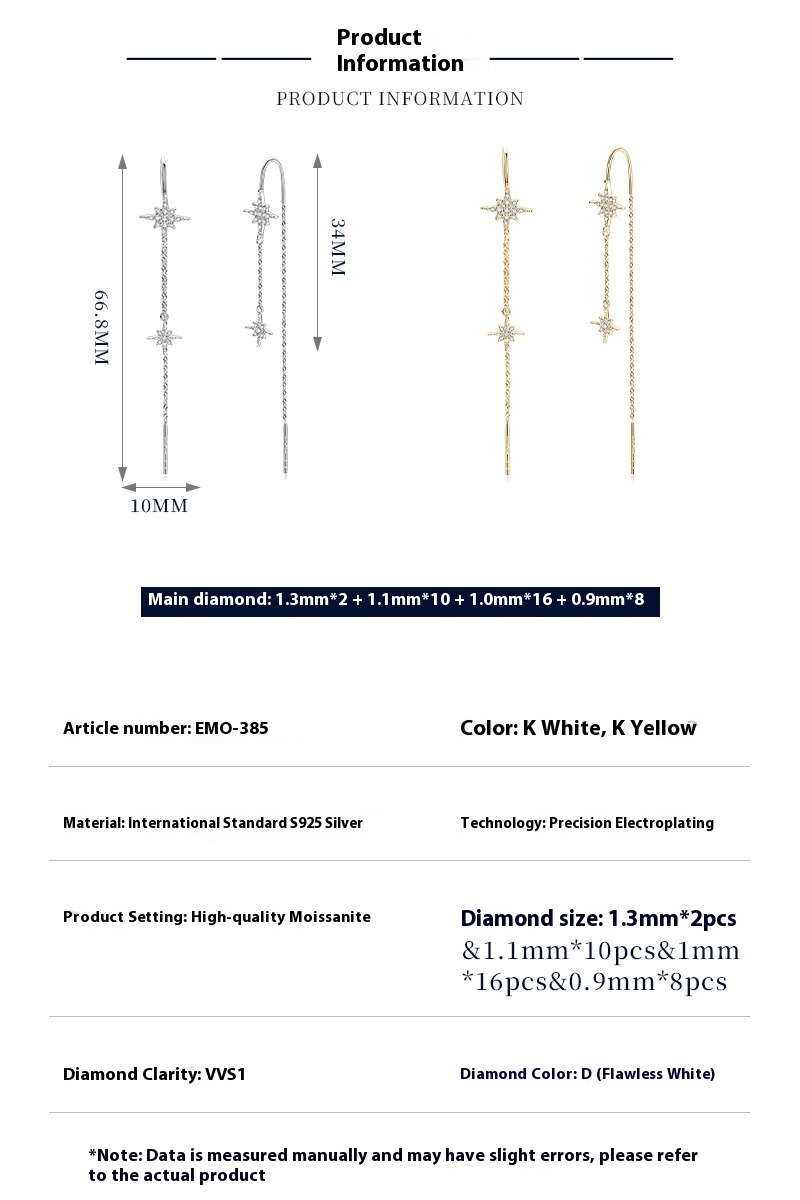 S925 Sterling Silber Octagram Star Moissanite Ohrringe - Stern Design
