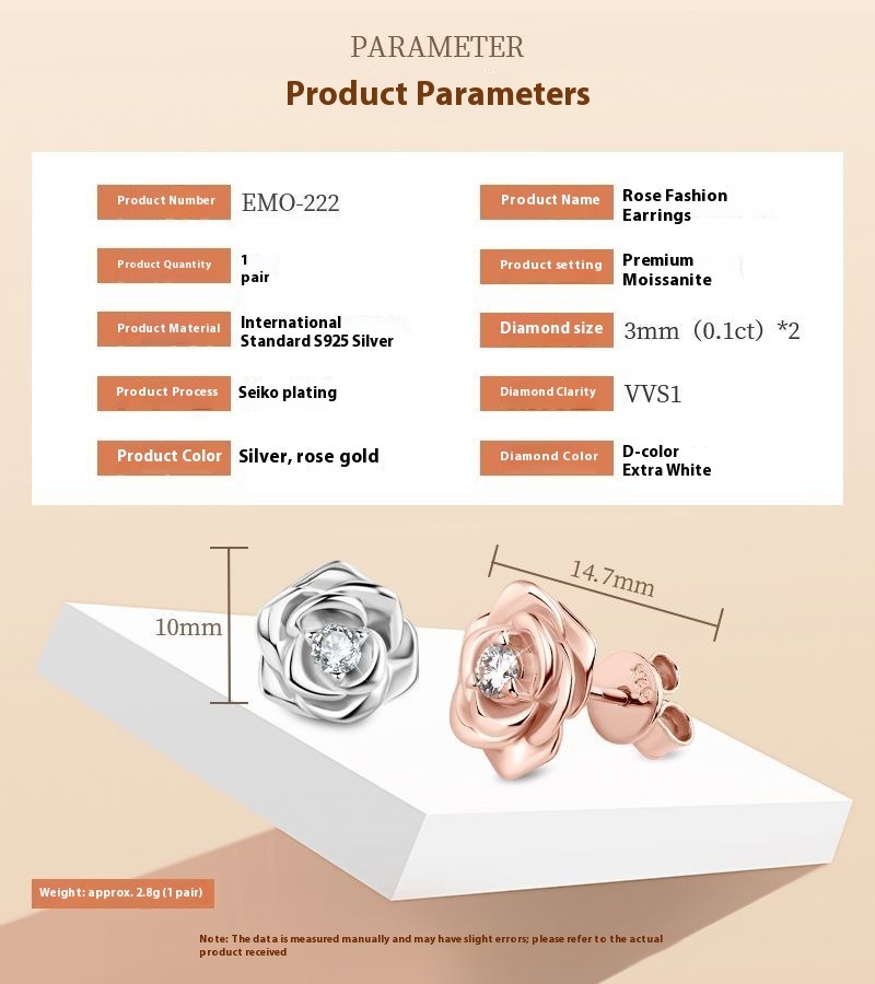 S925 Sterling Silber Roségold D-Farbe Moissanit Ohrstecker - Premium Brillanz