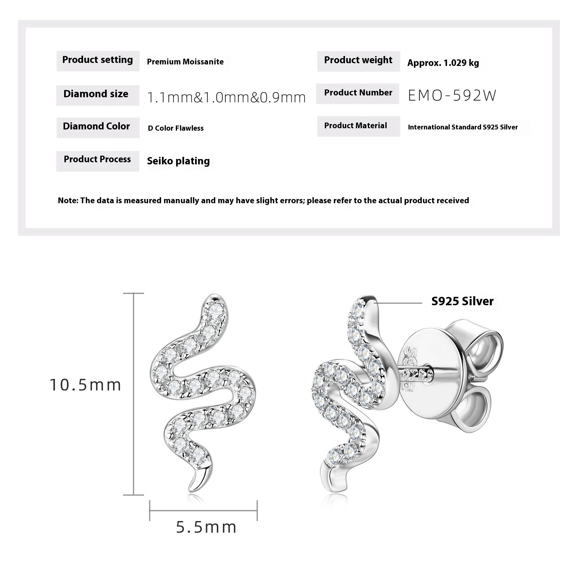 S925 Sterling Silber Schlange Zodiac Moissanite Ohrstecker - Kulturelles Luxusdesign