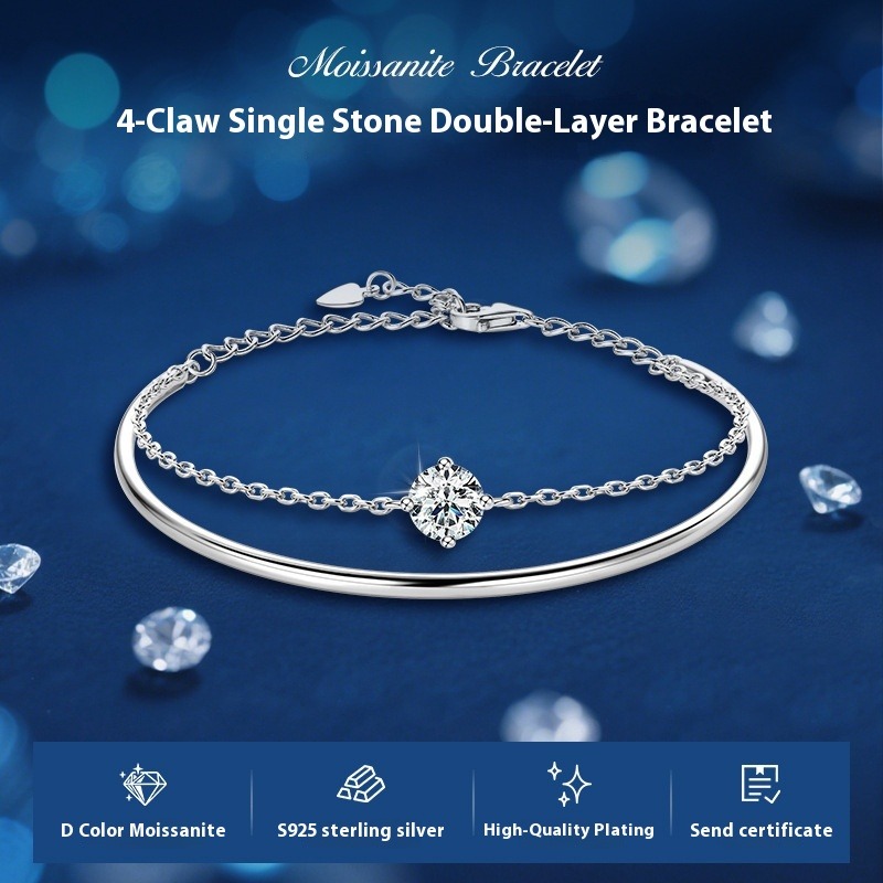 Stapelbares Moissanit-Armband aus S925 Sterlingsilber – Luxusschmuck in Schichten