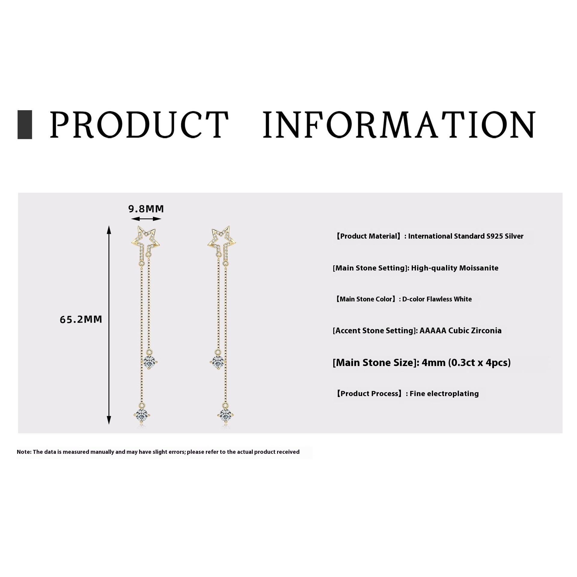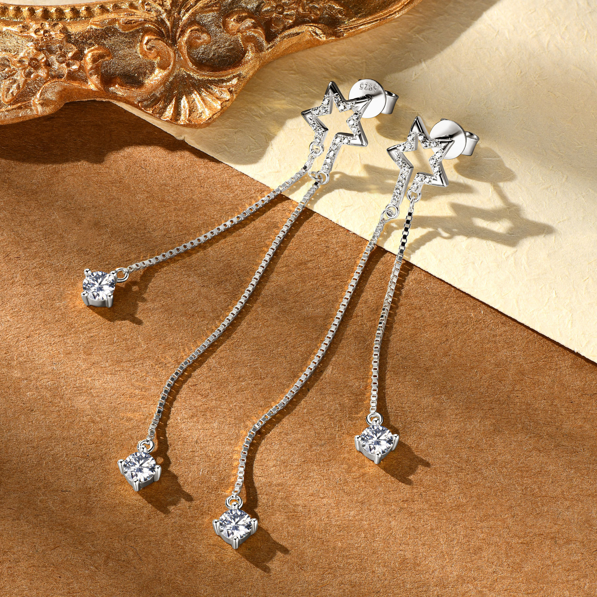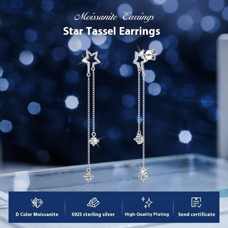 S925 Sterling Silber Stern Fransen Moissanit Ohrringe - Tropfen Ohrringe