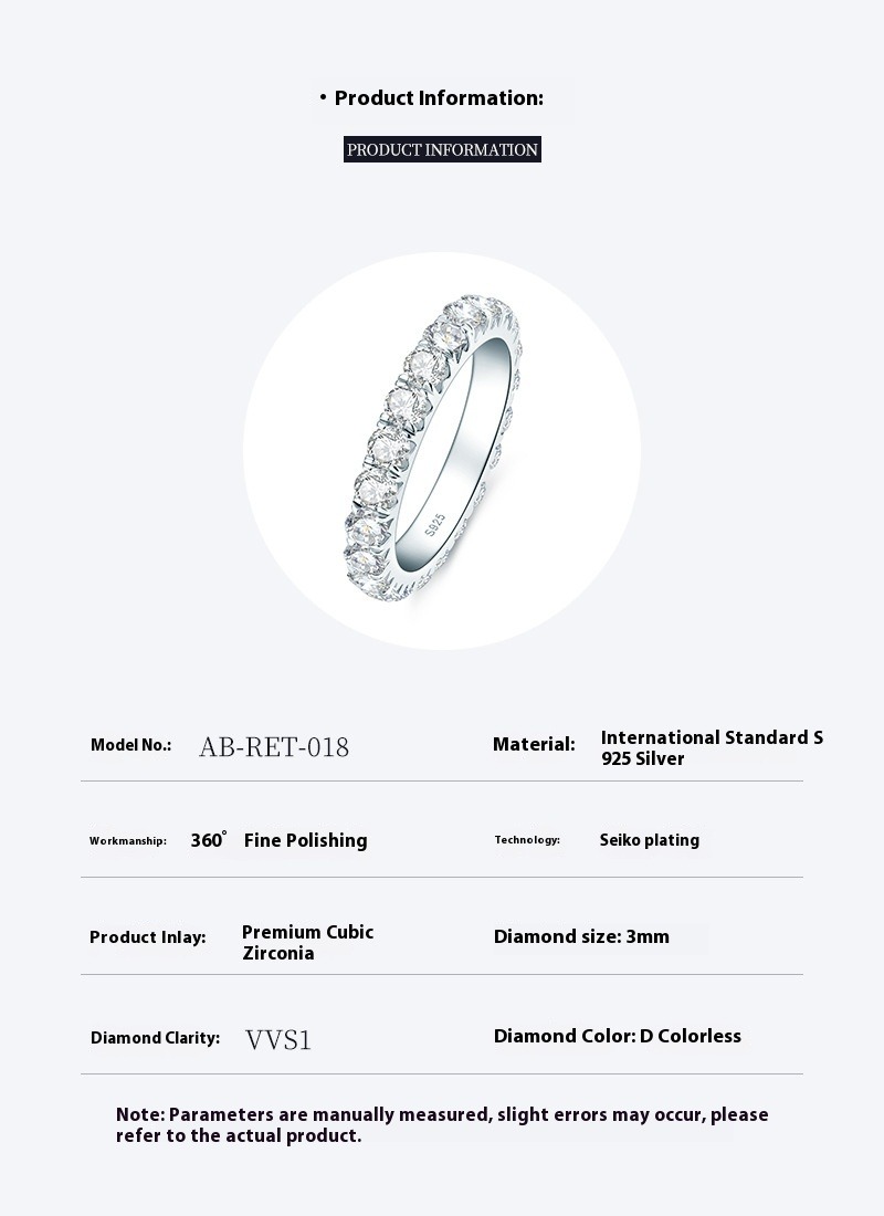 S925 Sterling Silber Zirkon Pavé Bandring - Vollreihenfassung