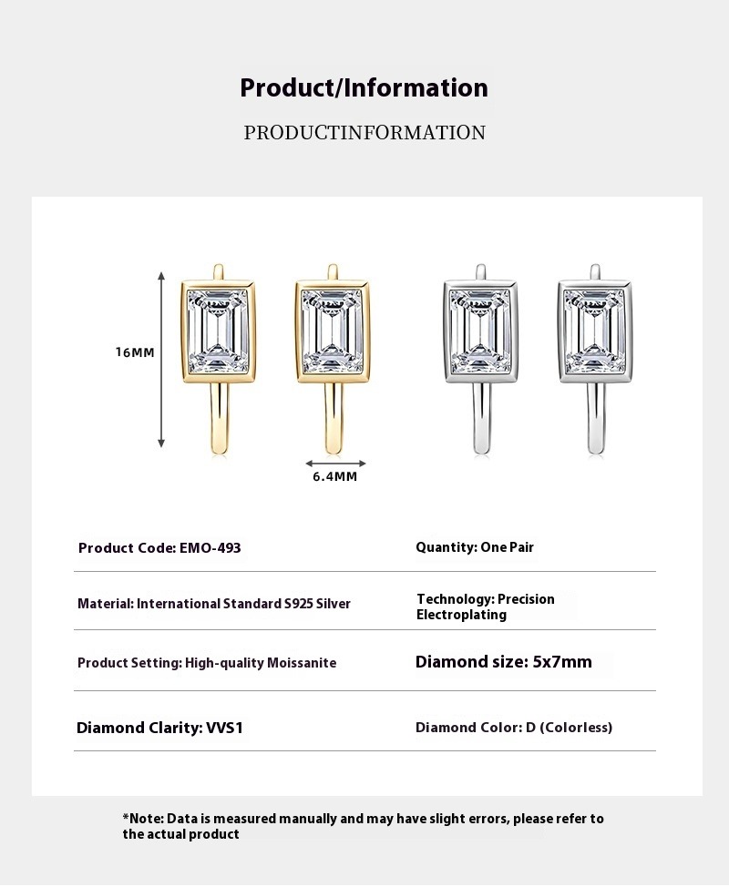 D-Color Moissanite U-förmige Ohrringe - S925 Silber rechteckige geometrische Ohrstecker