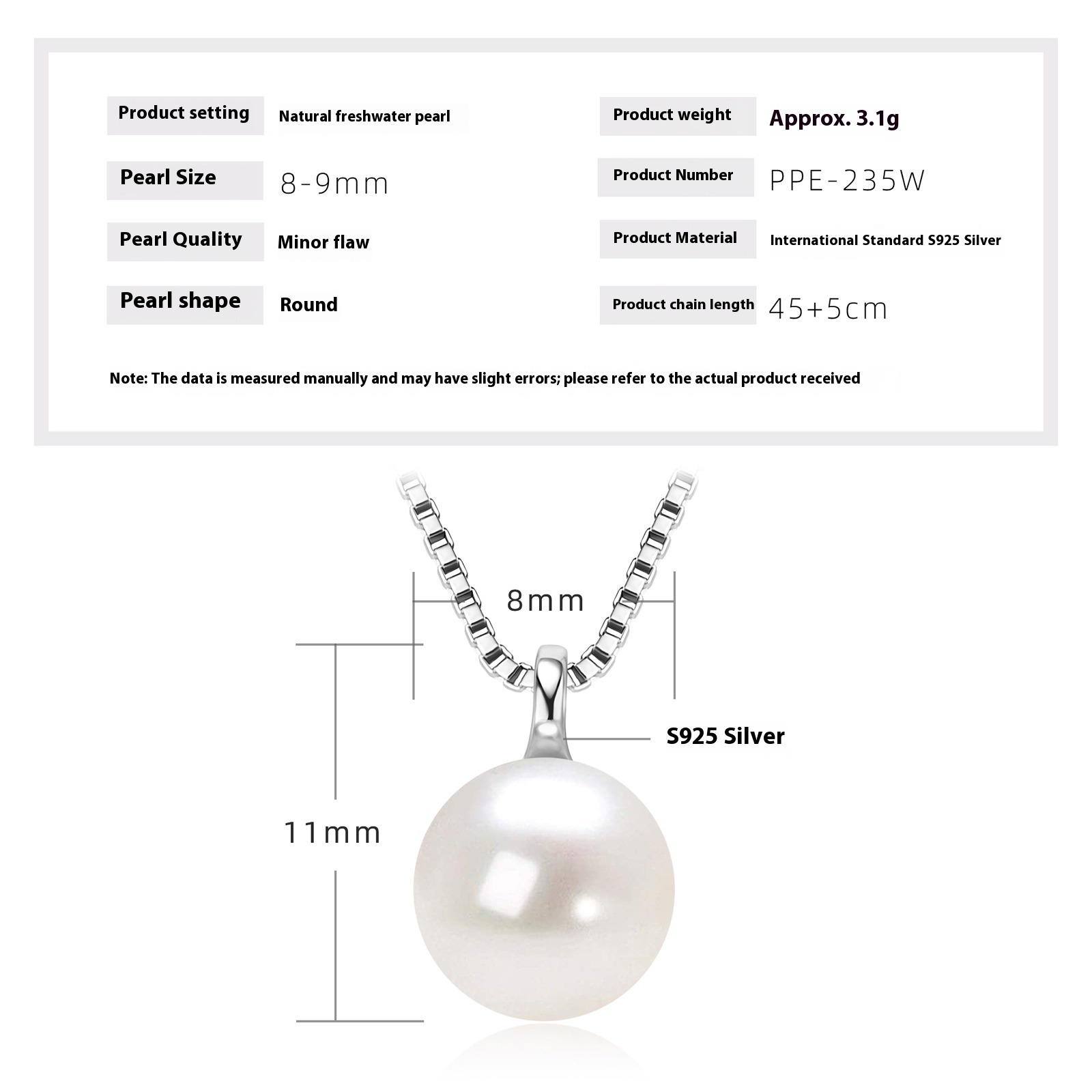 S925 Sterling Silber Natürliche Süßwasserperlen Halskette - Minimalistischer Einzelperlen Anhänger