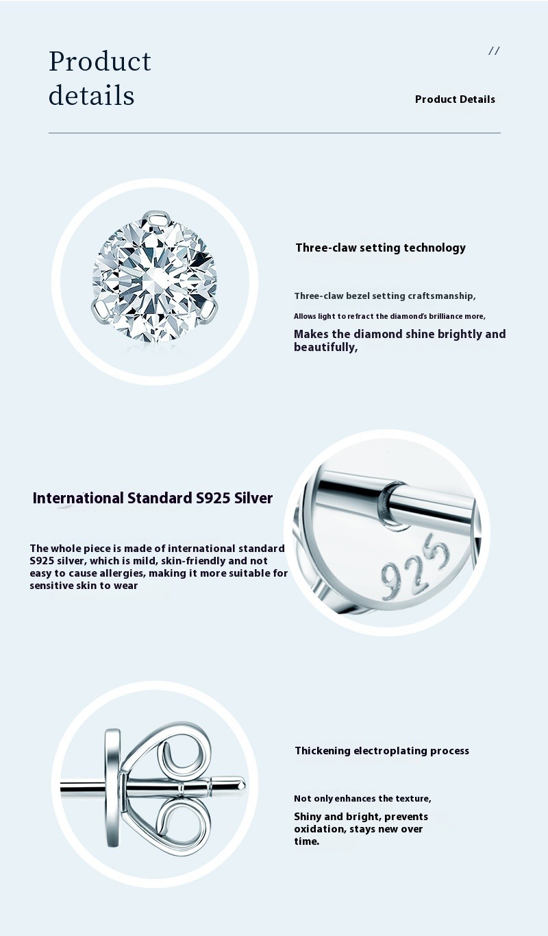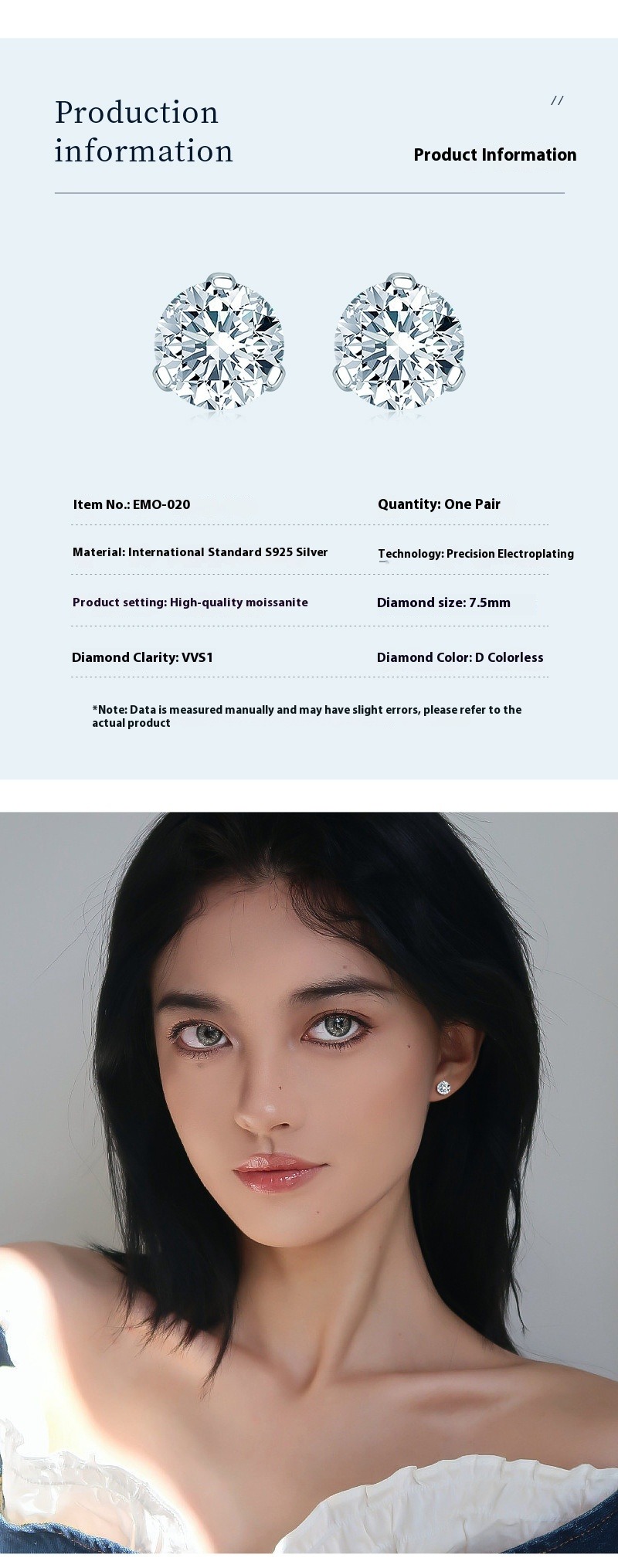 1.5 Carat D-Color Moissanite Stud Earrings - S925 Sterling Silver Classic Jewelry for Women