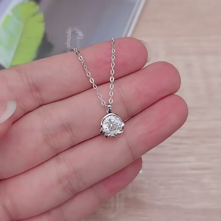 1 Carat Moissanite Olive Leaf Necklace - S925 Sterling Silver Delicate Chain