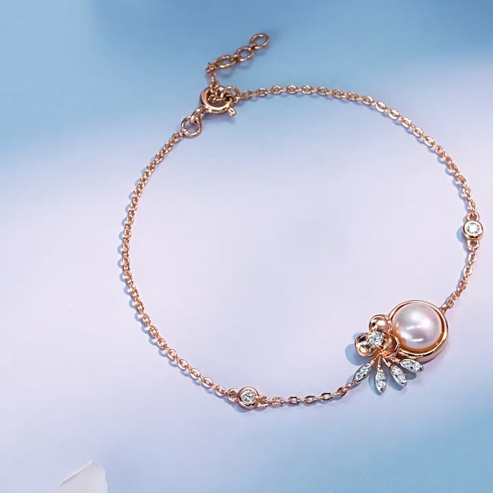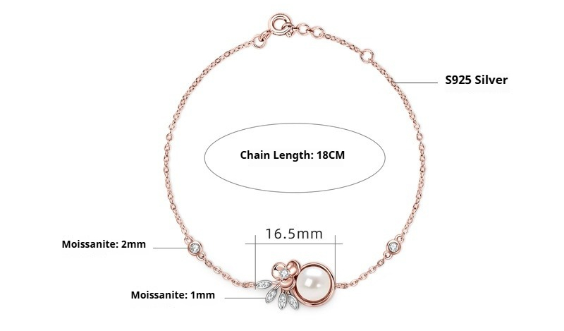 925 Sterling Silver Pearl Flower Bracelet - Elegant Moissanite Jewelry for Women