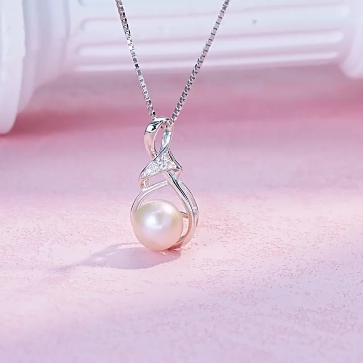 9mm Freshwater Pearl Pendant - S925 Sterling Silver with Moissanite Accent