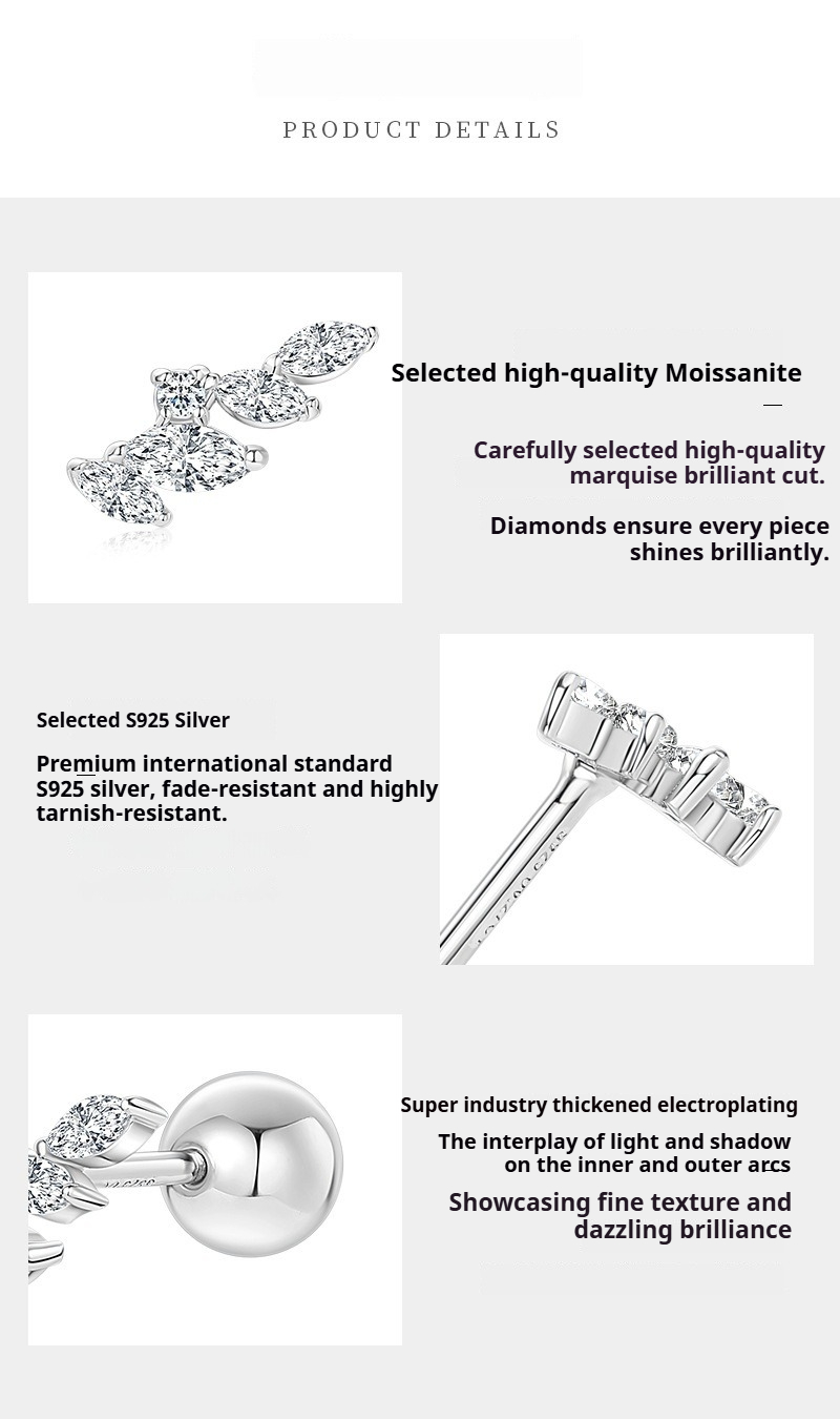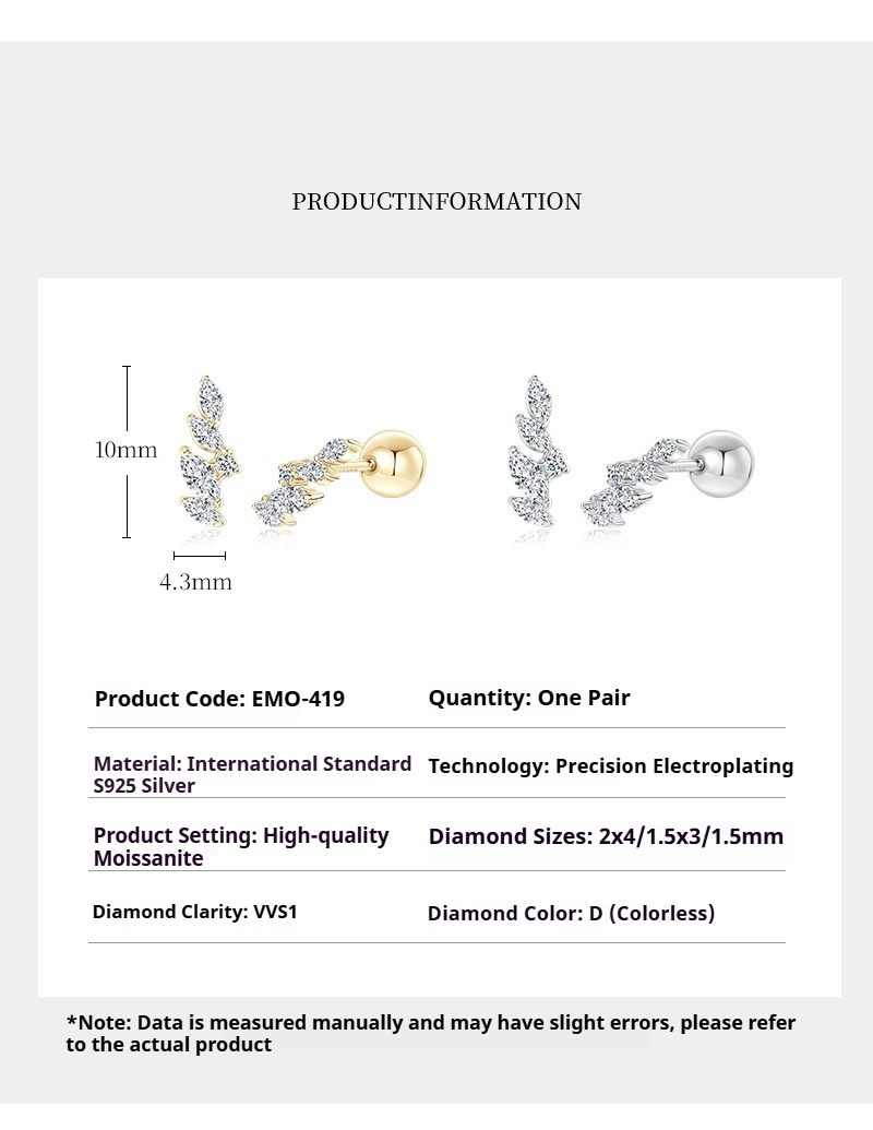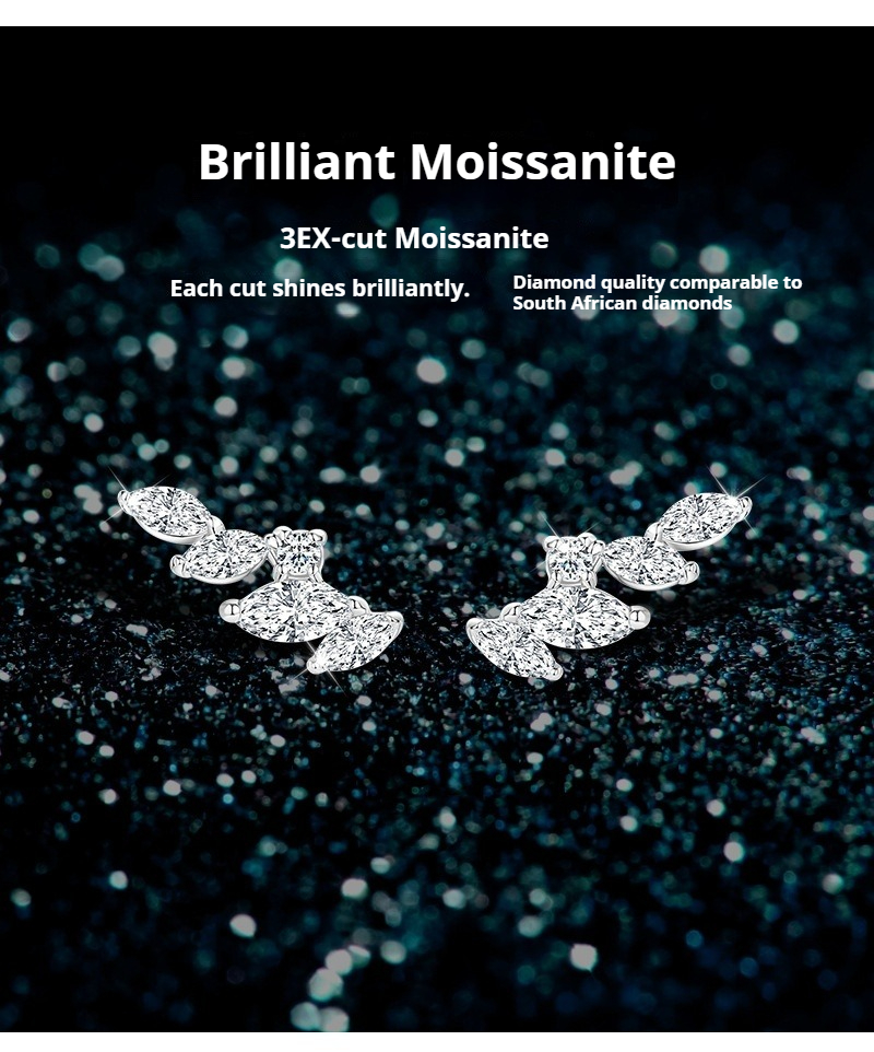 Angel Wings Moissanite Stud Earrings - D Color 925 Sterling Silver for Women