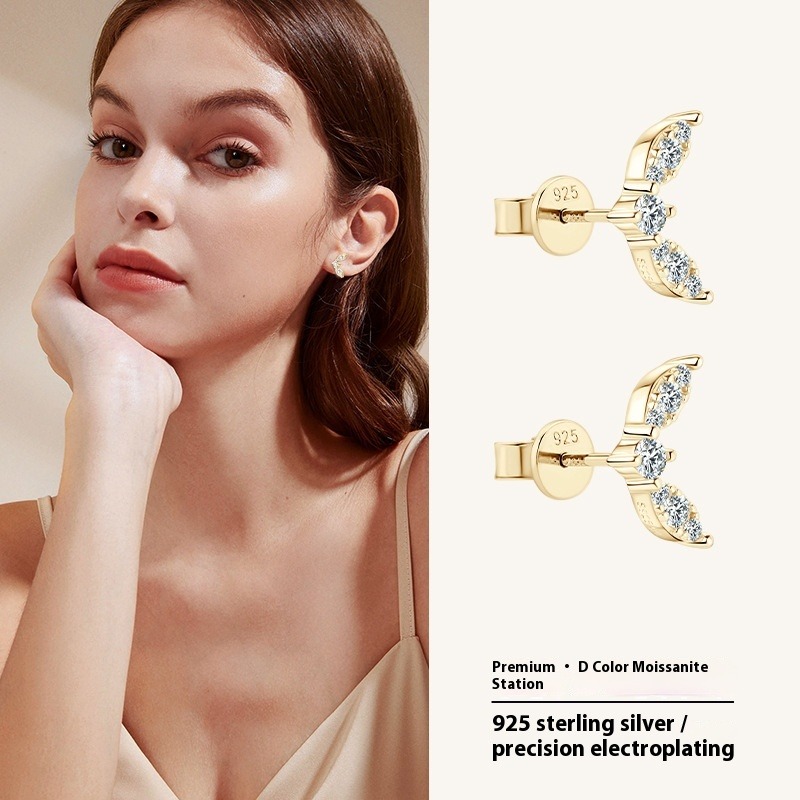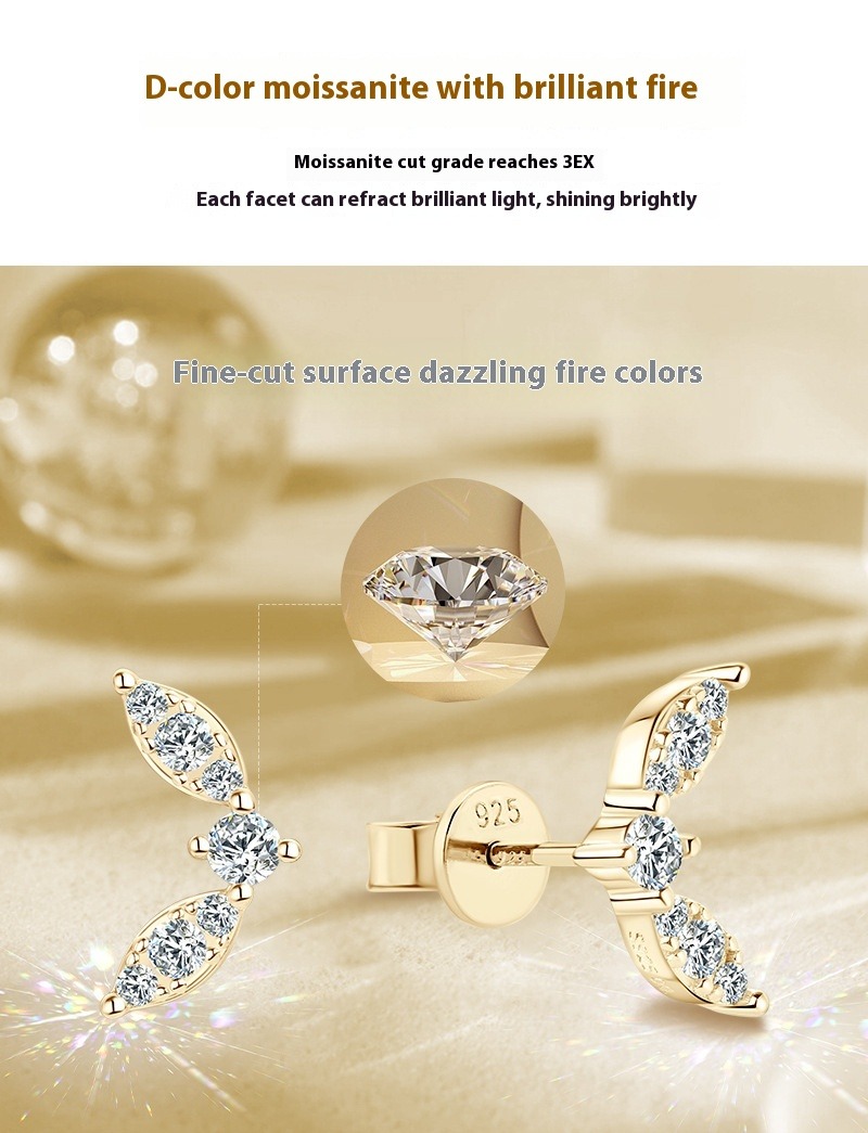 Butterfly Stud Earrings - Sterling Silver with Moissanite for Women
