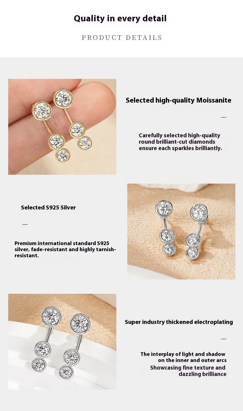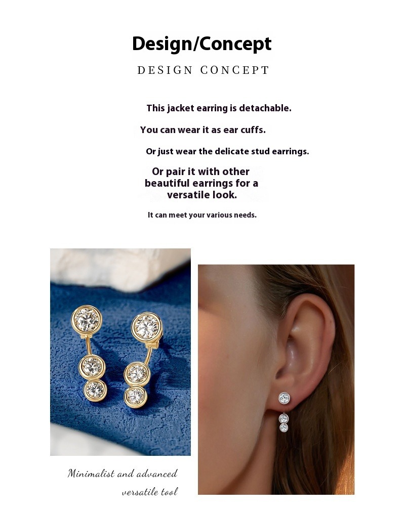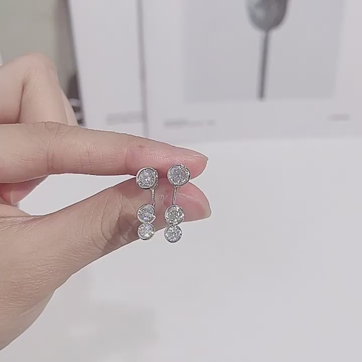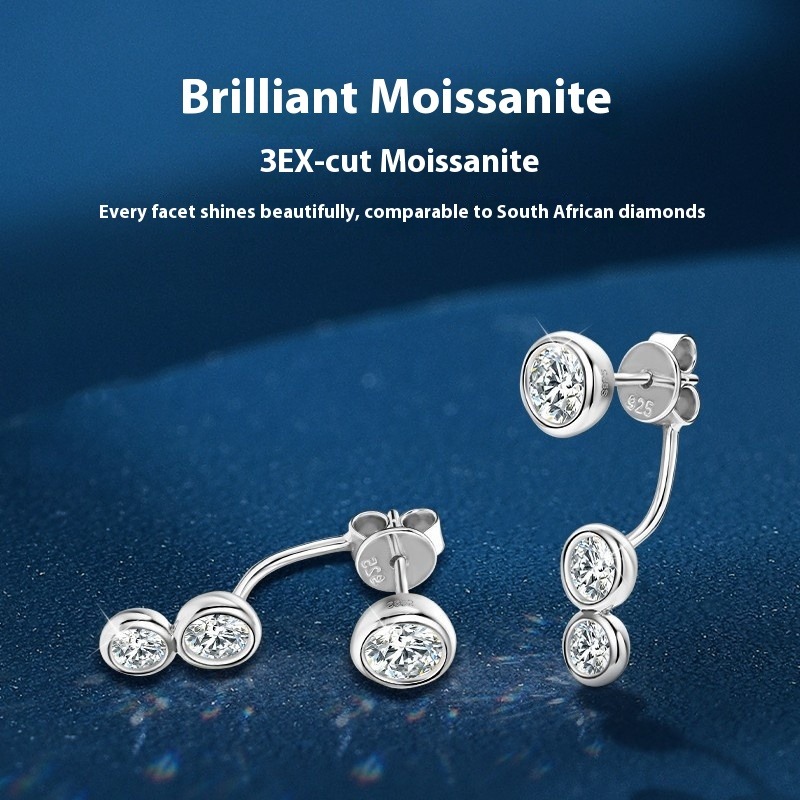 Convertible Moissanite Stud Earrings - Sterling Silver 2-in-1 Design for Women