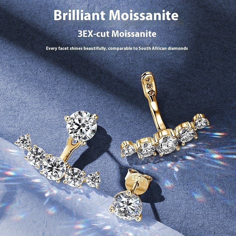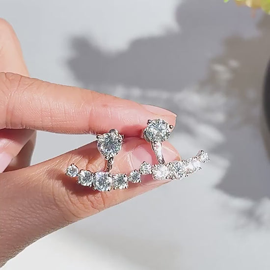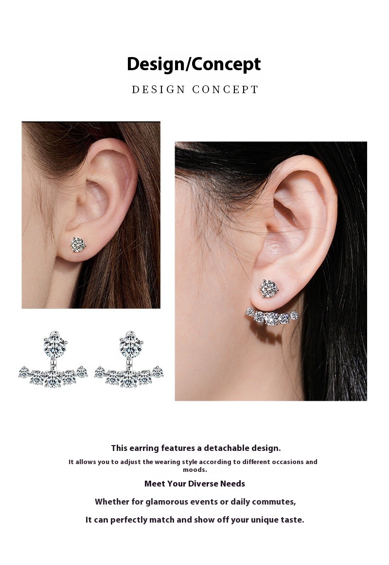 Convertible Moissanite Stud Earrings - Sterling Silver 2-Way Design for Women
