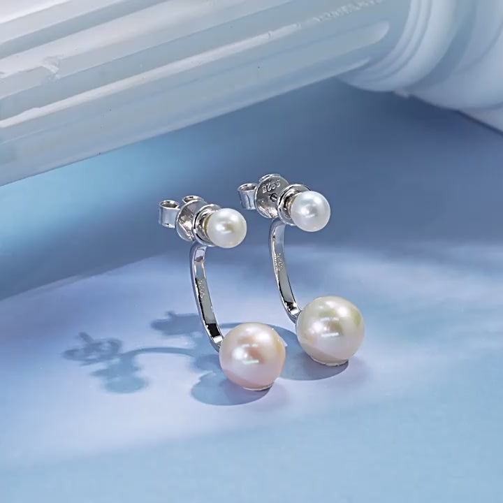 Convertible Natural Freshwater Pearl Stud Earrings - S925 Sterling Silver 2-in-1 Design