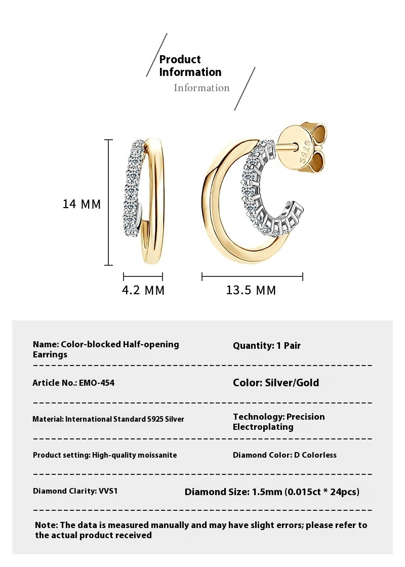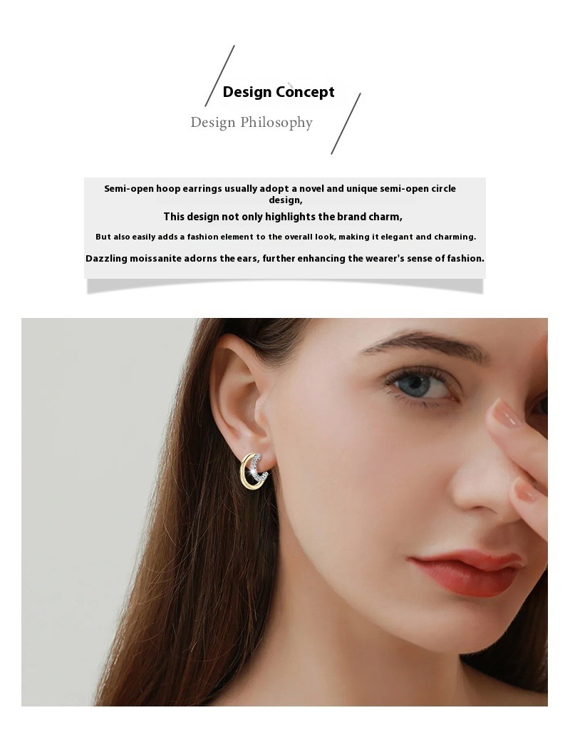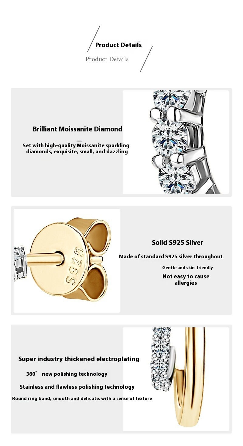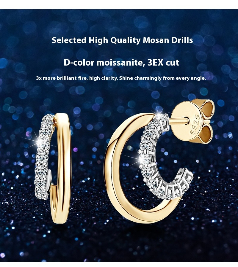 D-Color Moissanite Crescent Moon Earrings - S925 Sterling Silver 18K Gold Plated