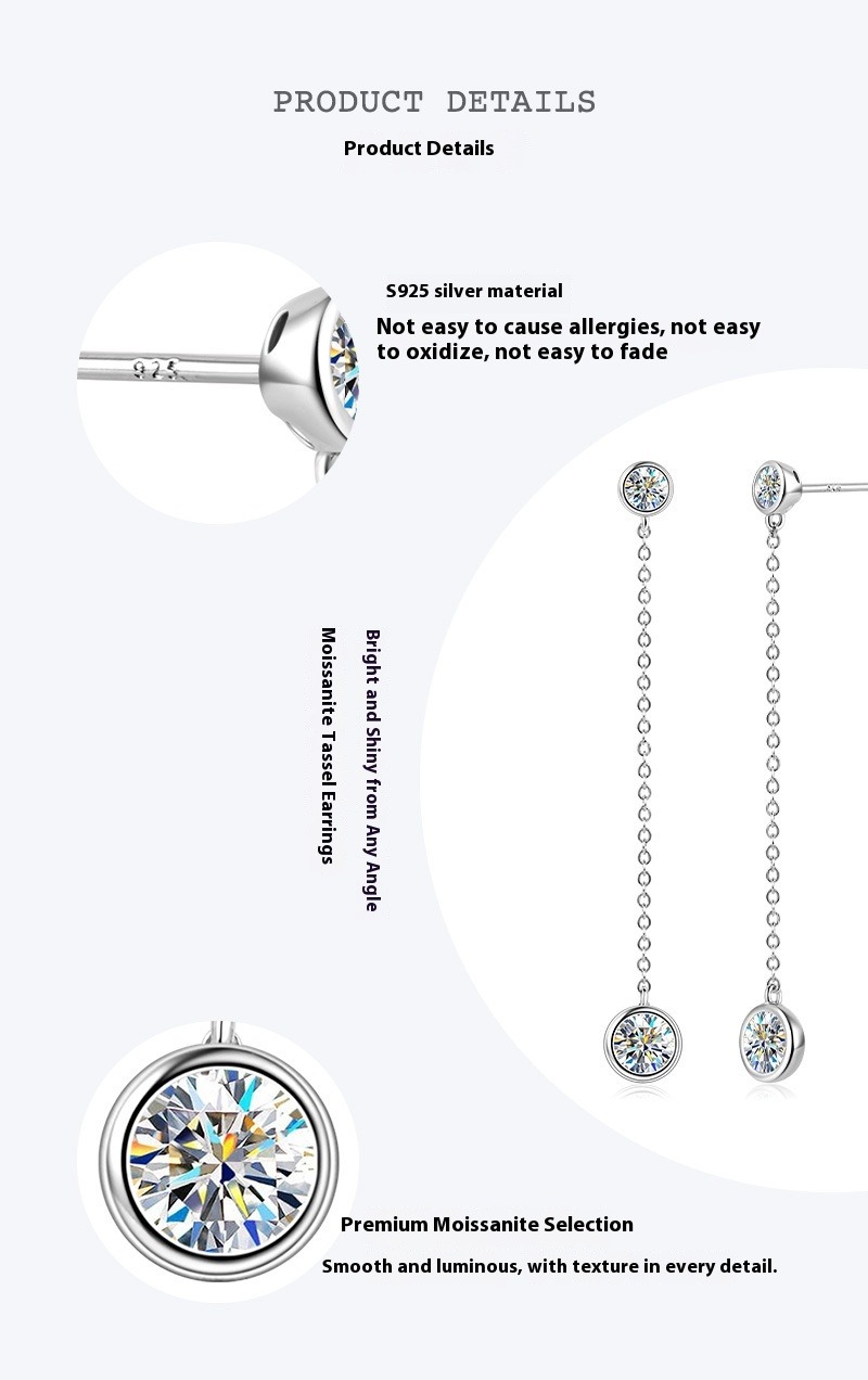 D-Color Moissanite Fringe Earrings - S925 Sterling Silver 18K Gold Plated