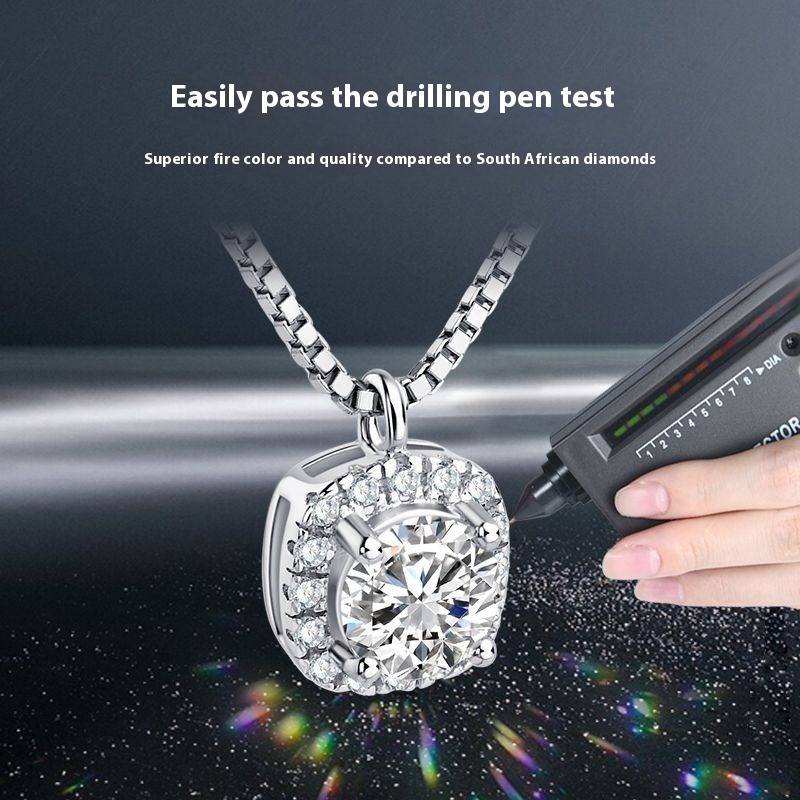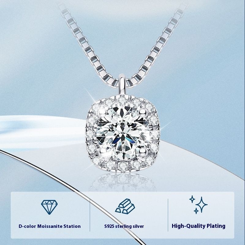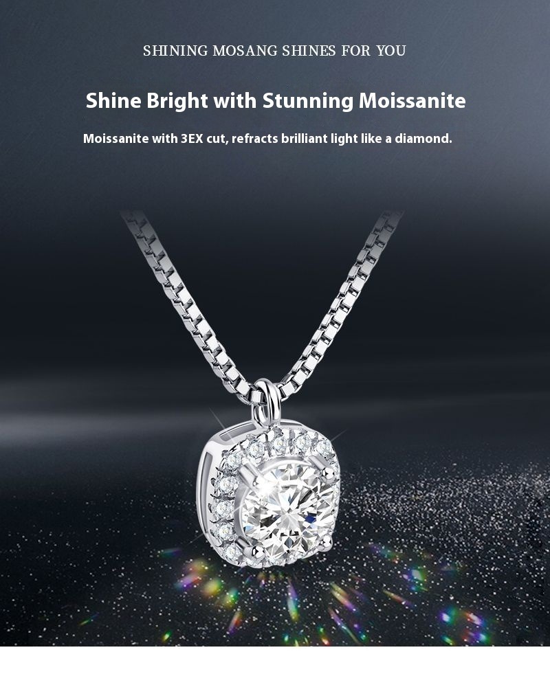 Delicate Cube Moissanite Choker Necklace - S925 Sterling Silver Chain Jewelry
