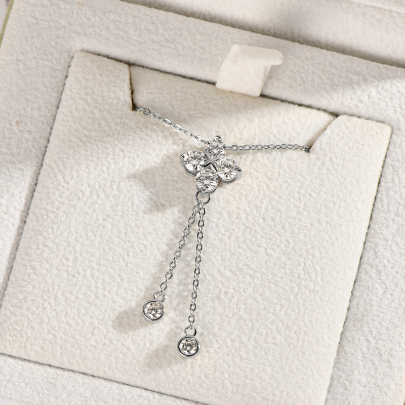 Four-Leaf Clover Fringe Pendant - Sterling Silver S925 High-End D Color Moissanite Necklace