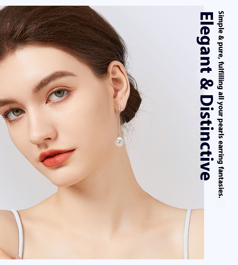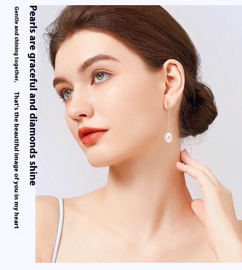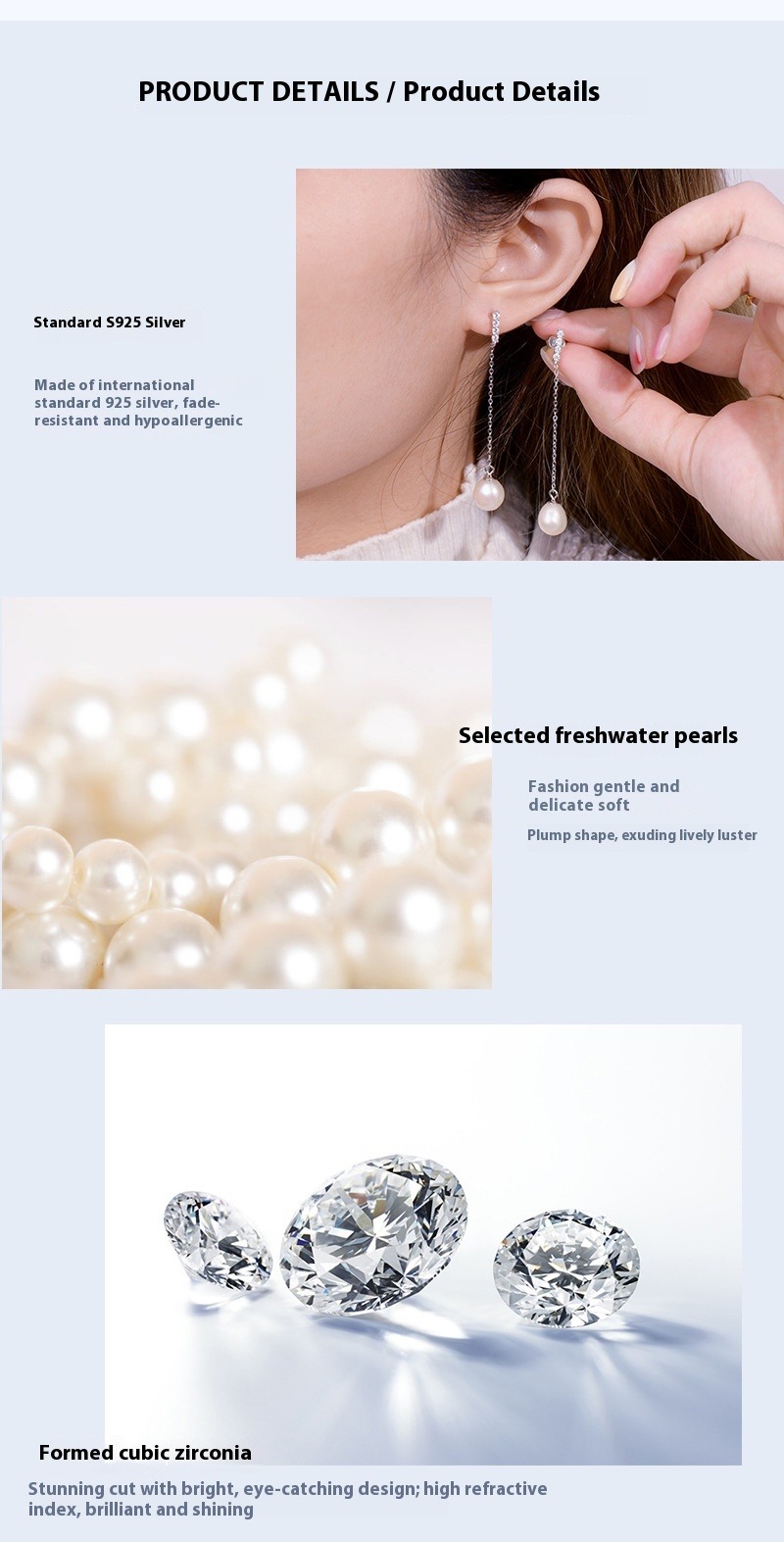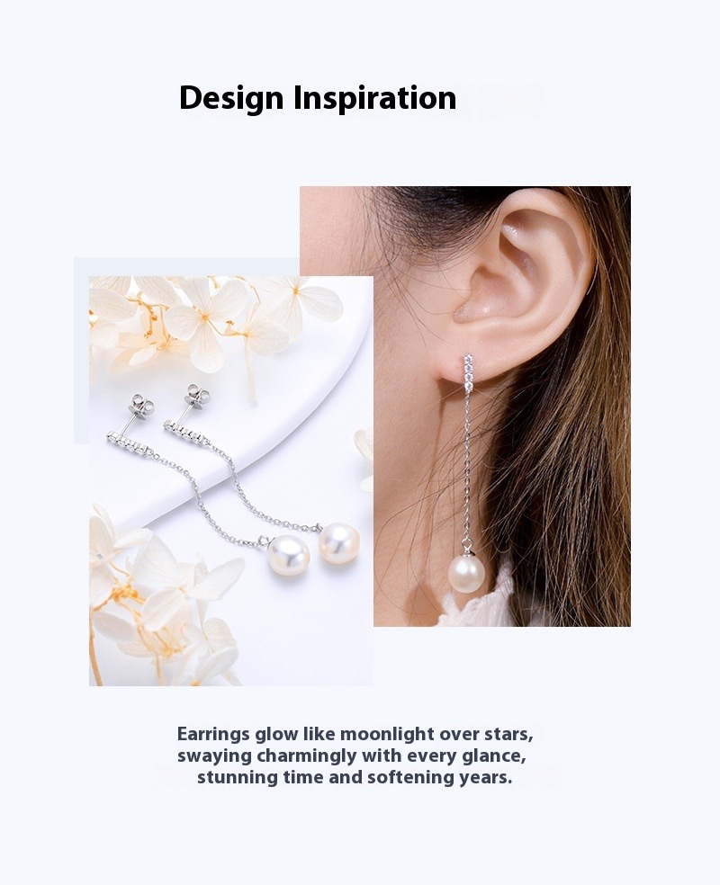 French Style Freshwater Pearl Long Drop Earrings - Sterling Silver for Women