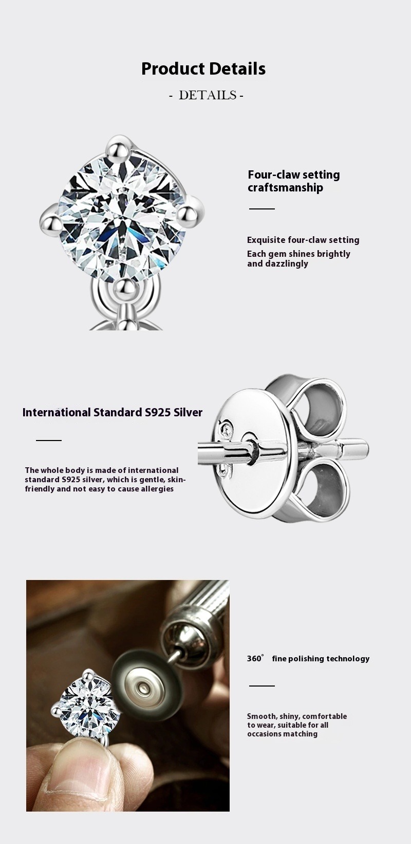 French Vintage Moissanite Stud Earrings - S925 Sterling Silver Classic Design