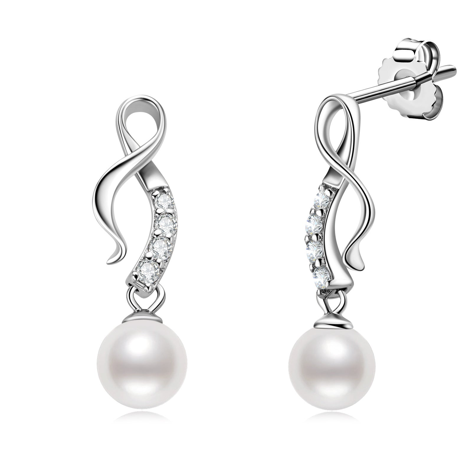 Freshwater Pearl Bow Earrings - S925 Sterling Silver Drop Earrings for Women