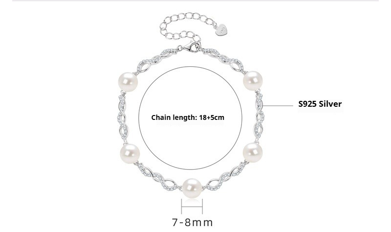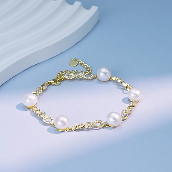 Freshwater Pearl Bracelet - S925 Sterling Silver with Crystal Accents for Women