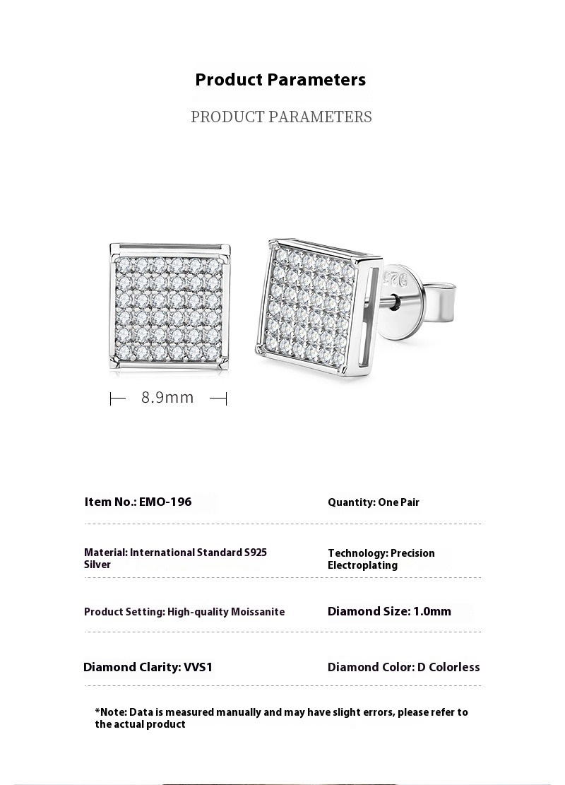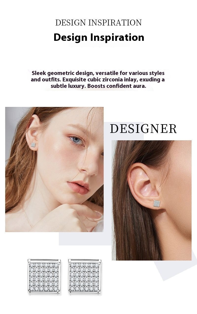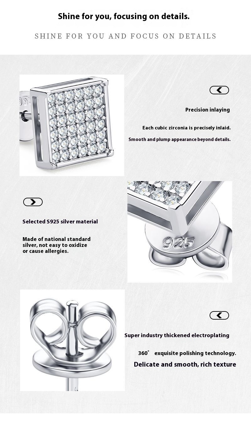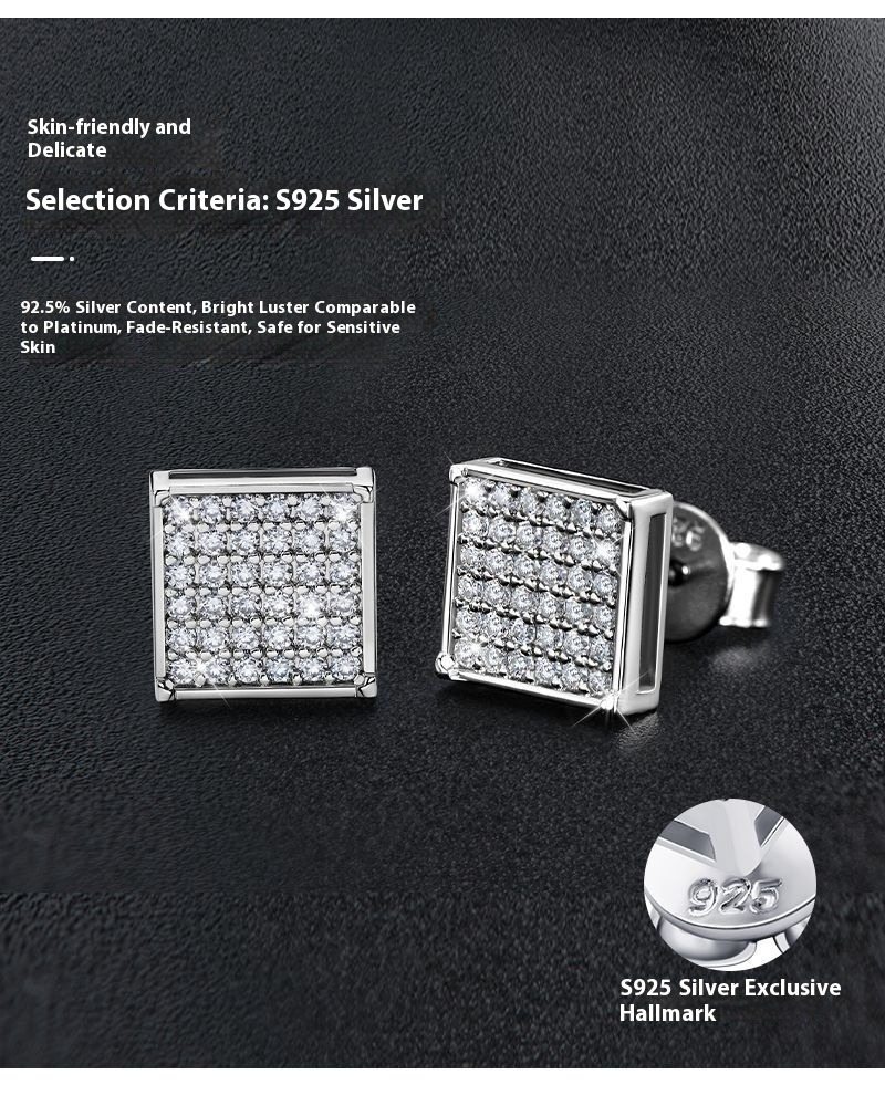 2025 Hip Hop Square Moissanite Stud Earrings - S925 Sterling Silver Unisex