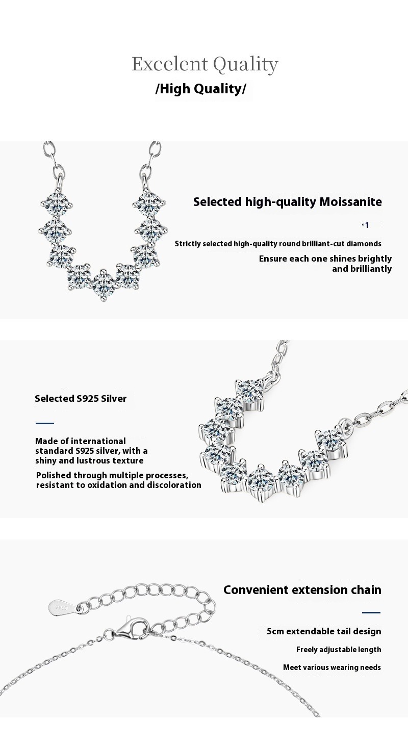 U-Shaped Horseshoe Moissanite Necklace - S925 Sterling Silver Collarbone Chain