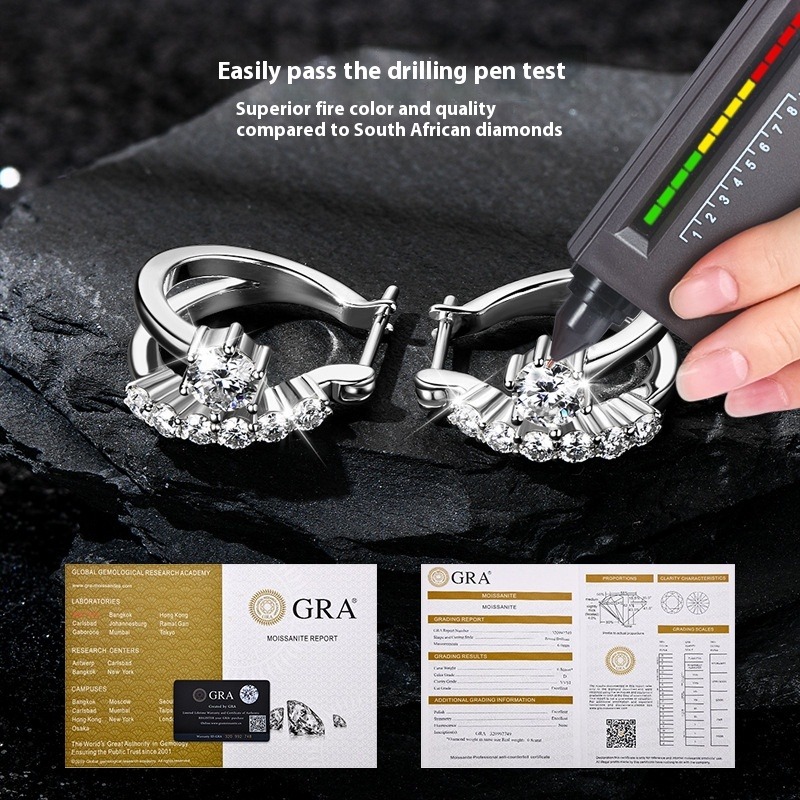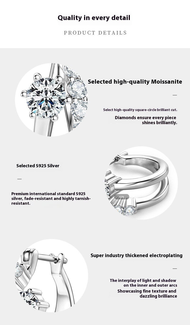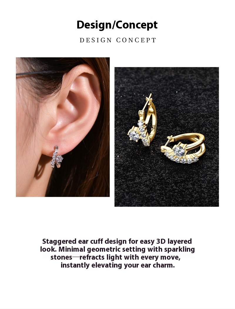 Sterling Silver Diamond Earrings - Asymmetric Stud Design