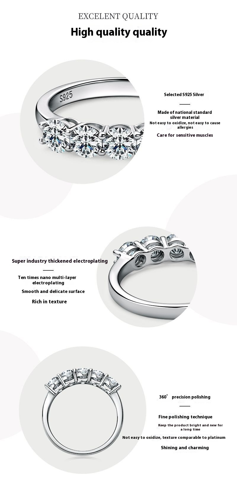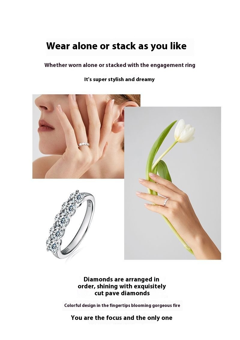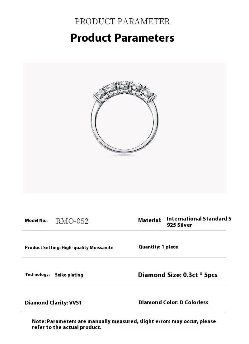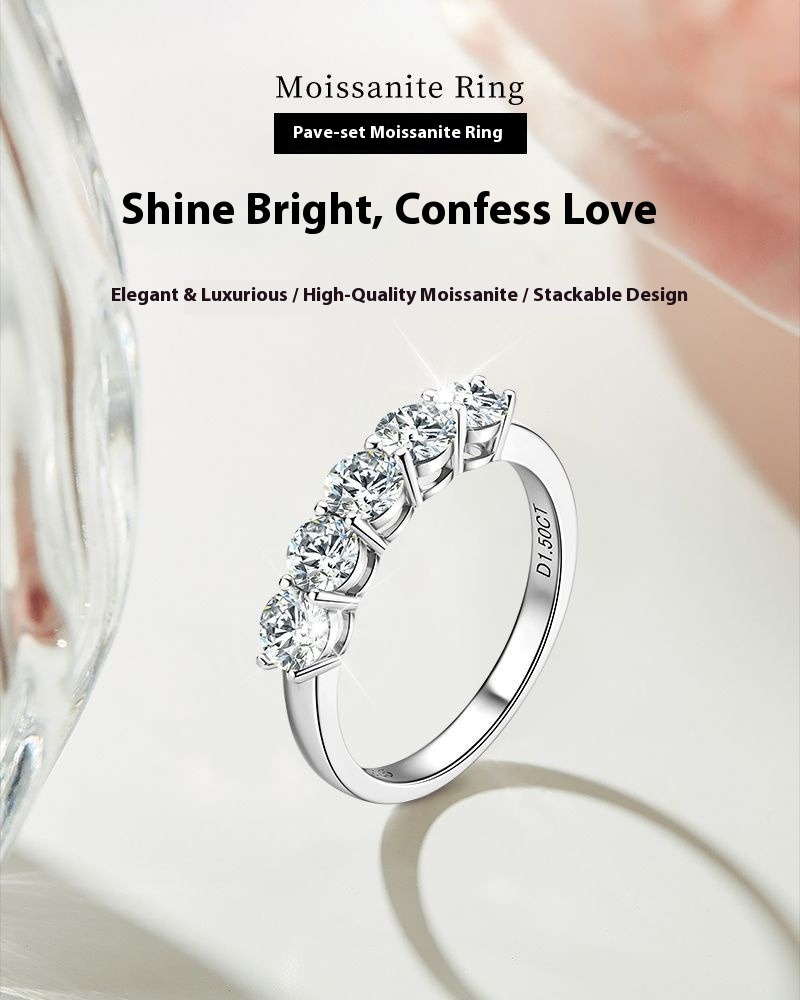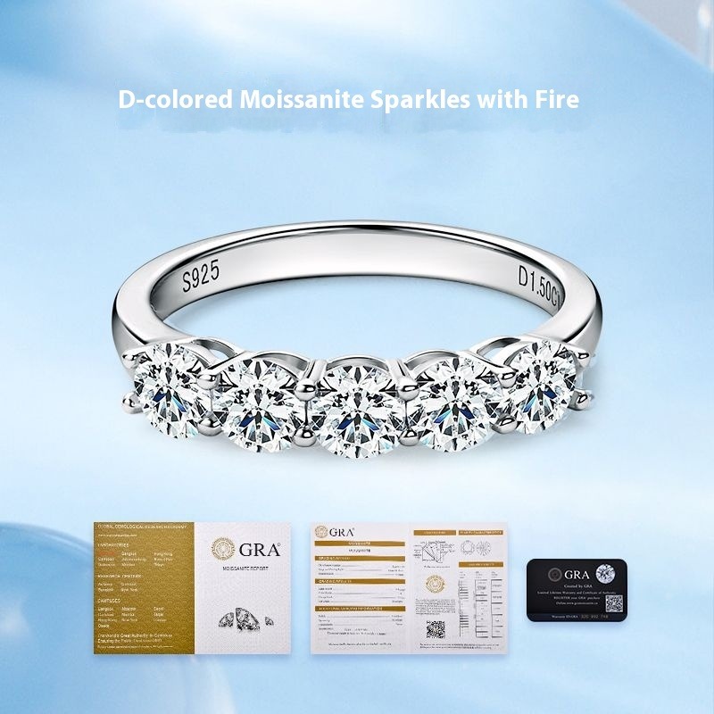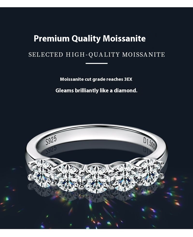 Luxury 5-Stone Moissanite Row Ring - S925 Sterling Silver Women's Tail Ring