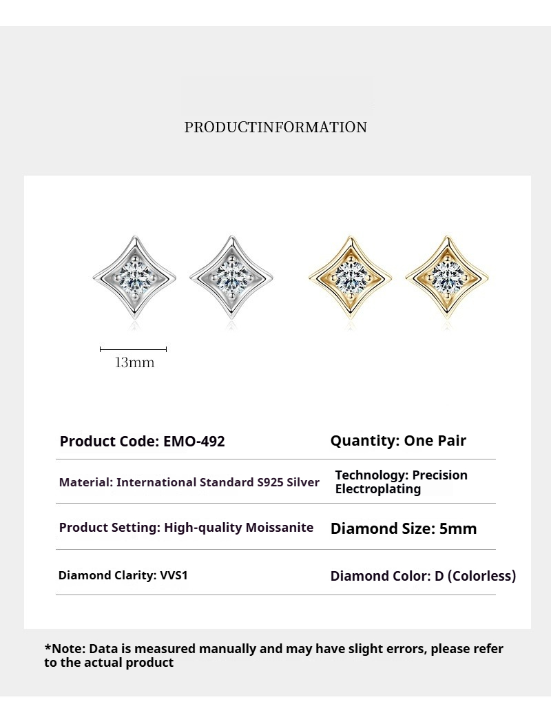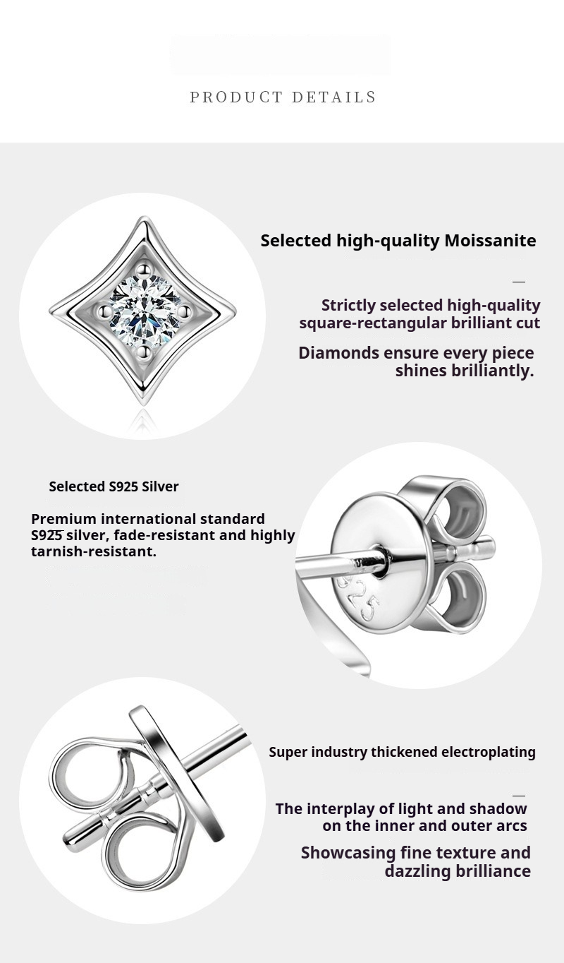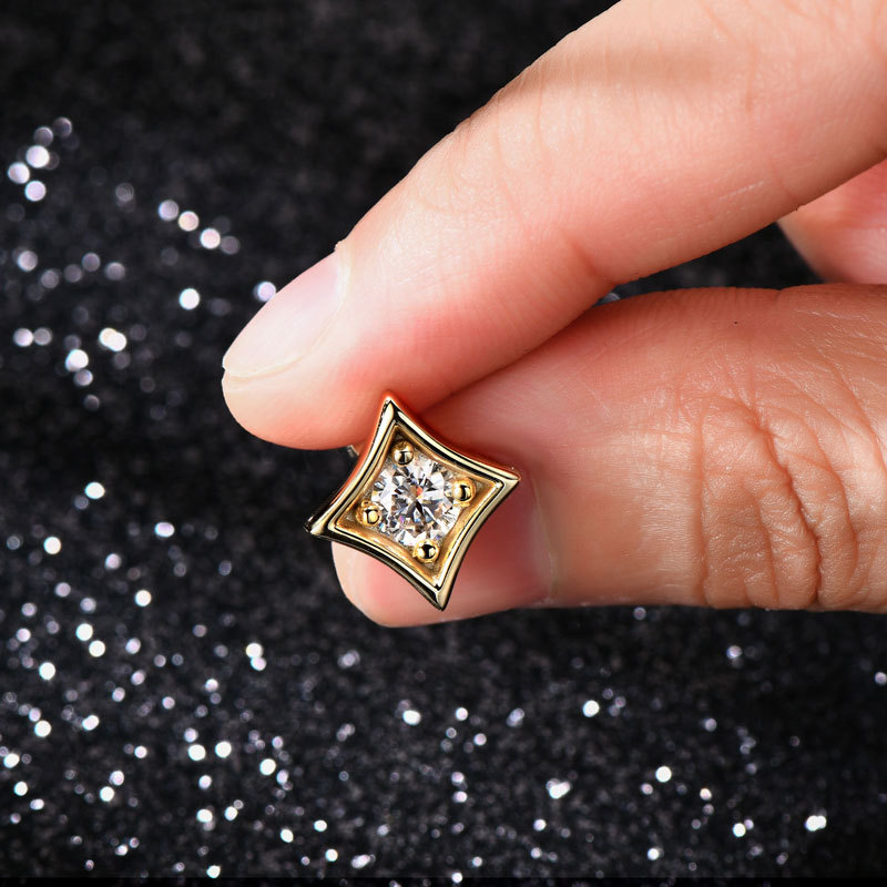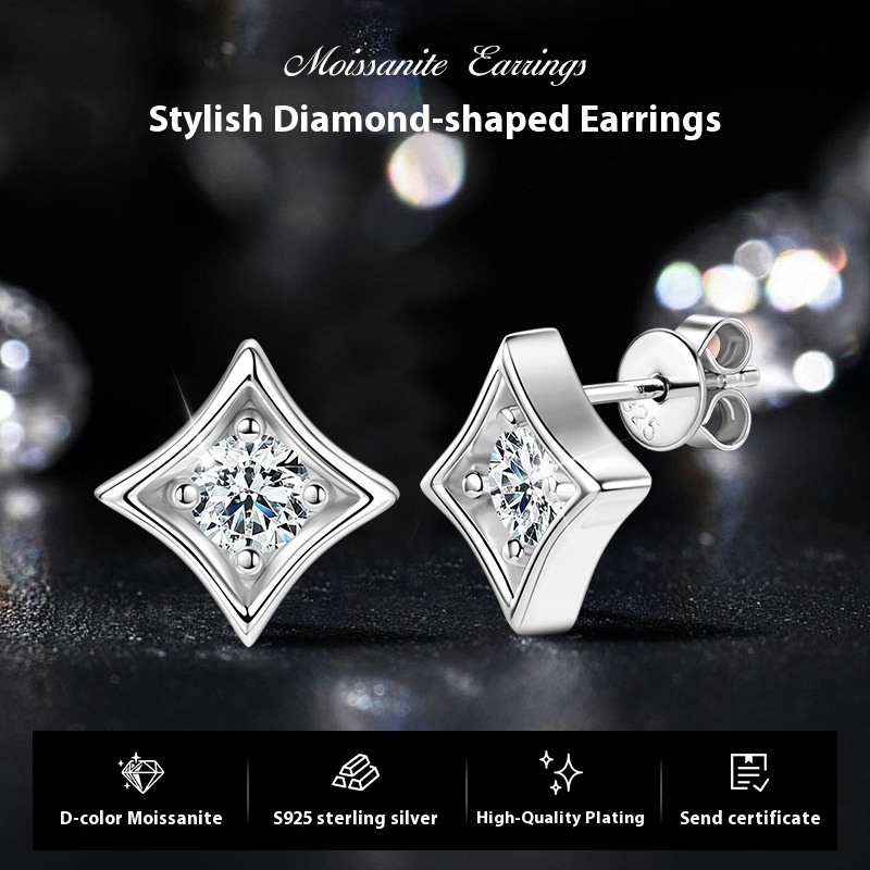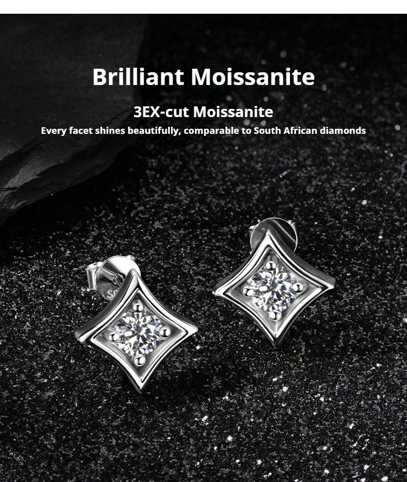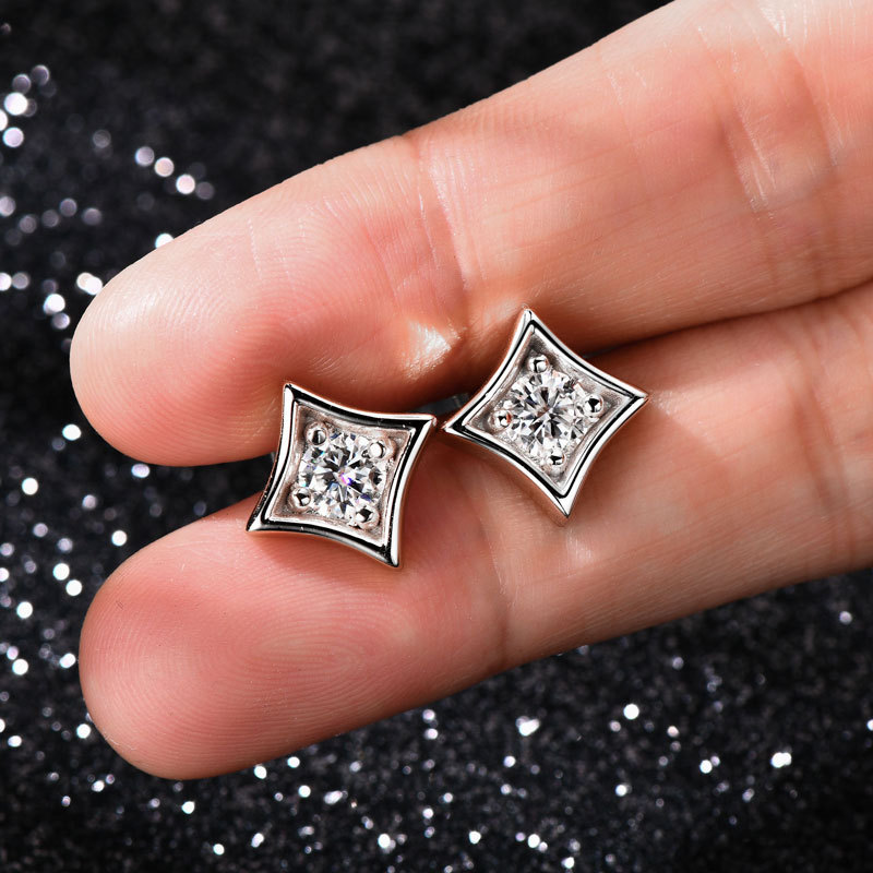 Moissanite Diamond Stud Earrings - Hip Hop Rhombus Sterling Silver 925 Unisex Punk Style