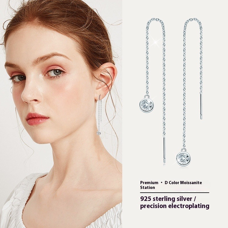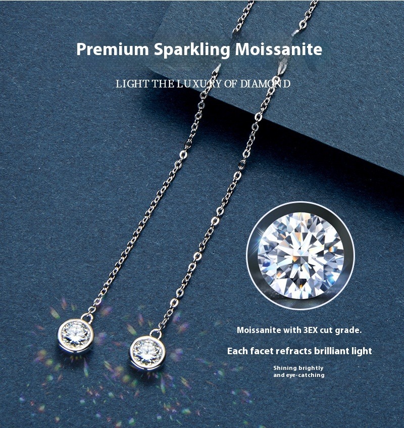 Moissanite Fringe Earrings - Sterling Silver Tassel Drop Earrings for Women