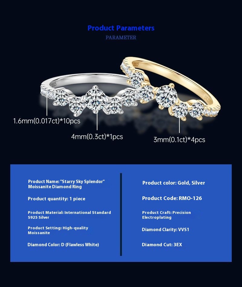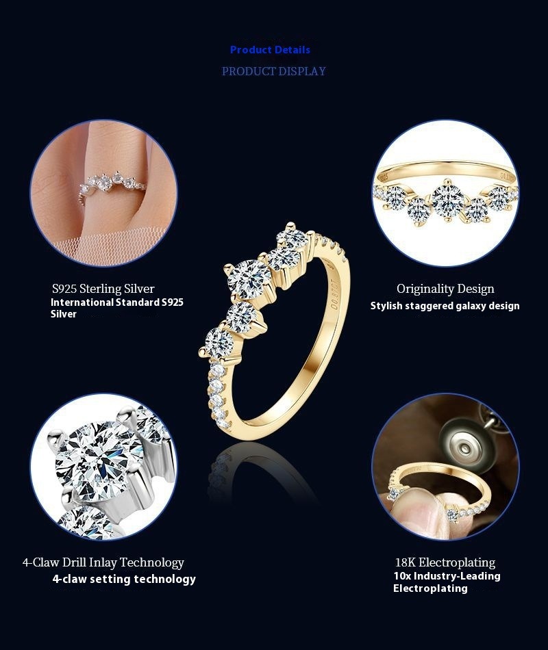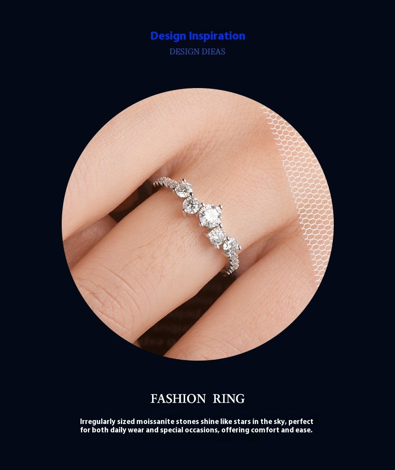 D-Color Moissanite Gypsy Ring - S925 Sterling Silver Versatile Band for Women