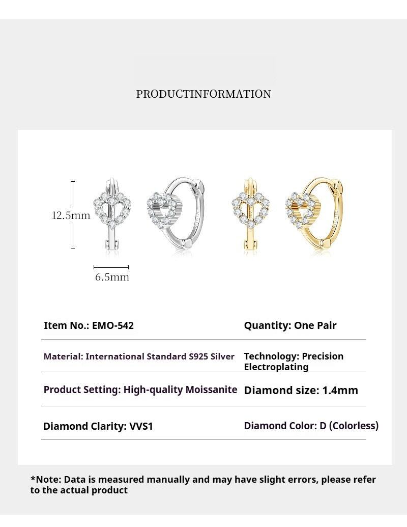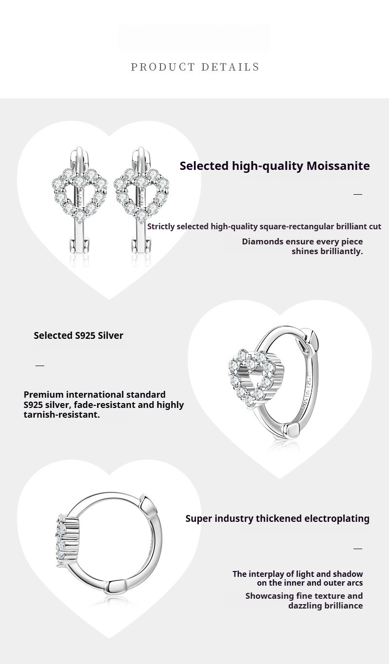 Moissanite Heart Stud Earrings - S925 Sterling Silver Love Earrings for Women