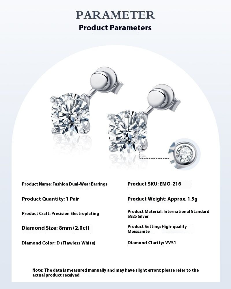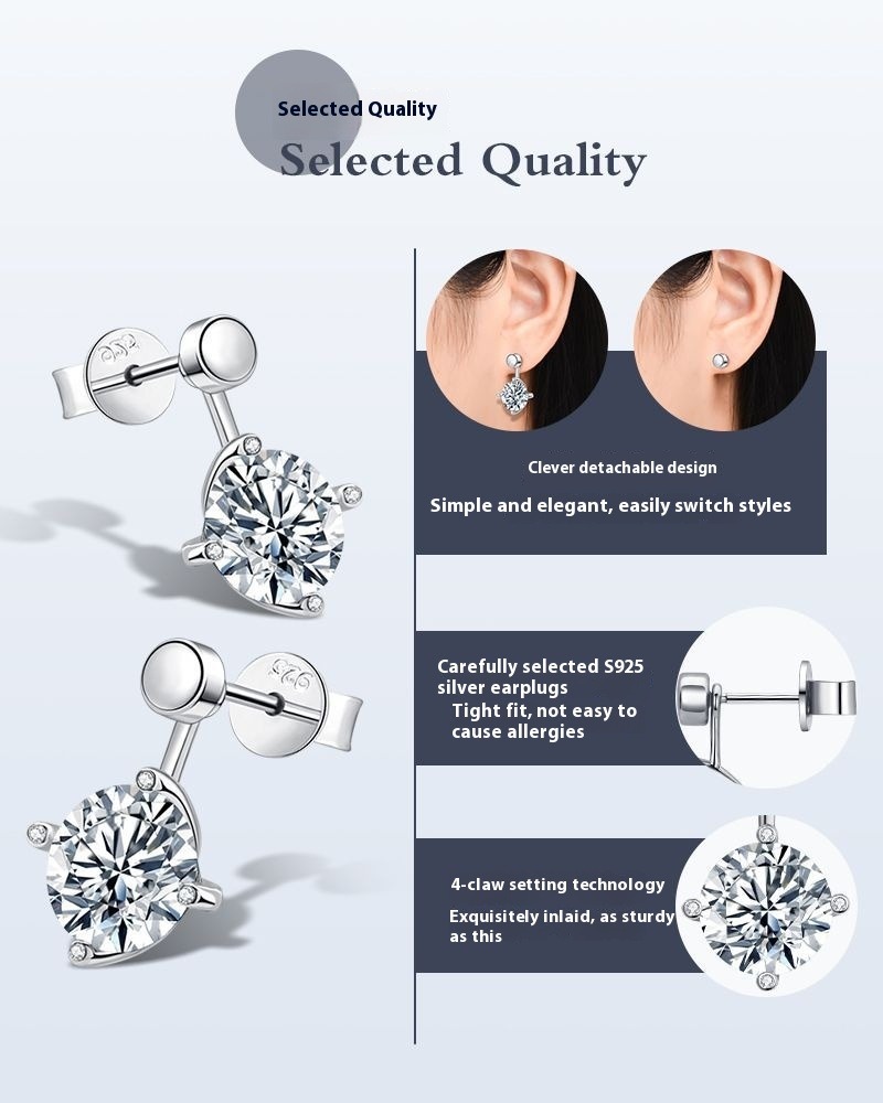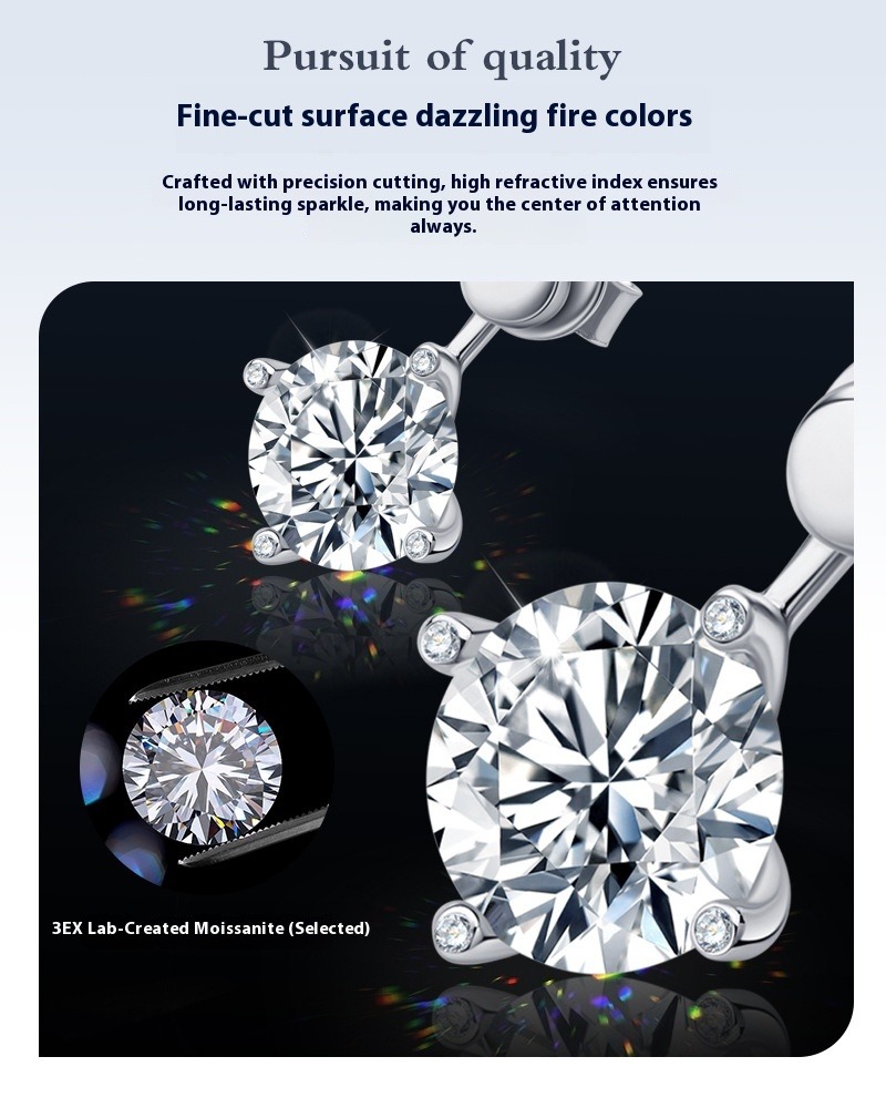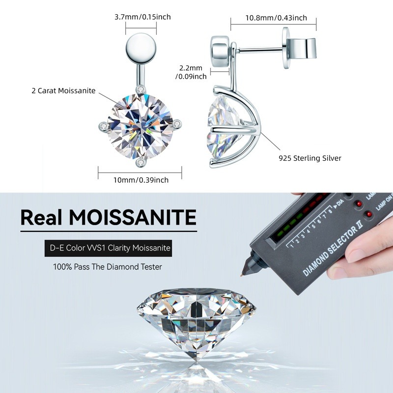 Moissanite Stud Earrings - Sterling Silver Designer Jewelry for Women
