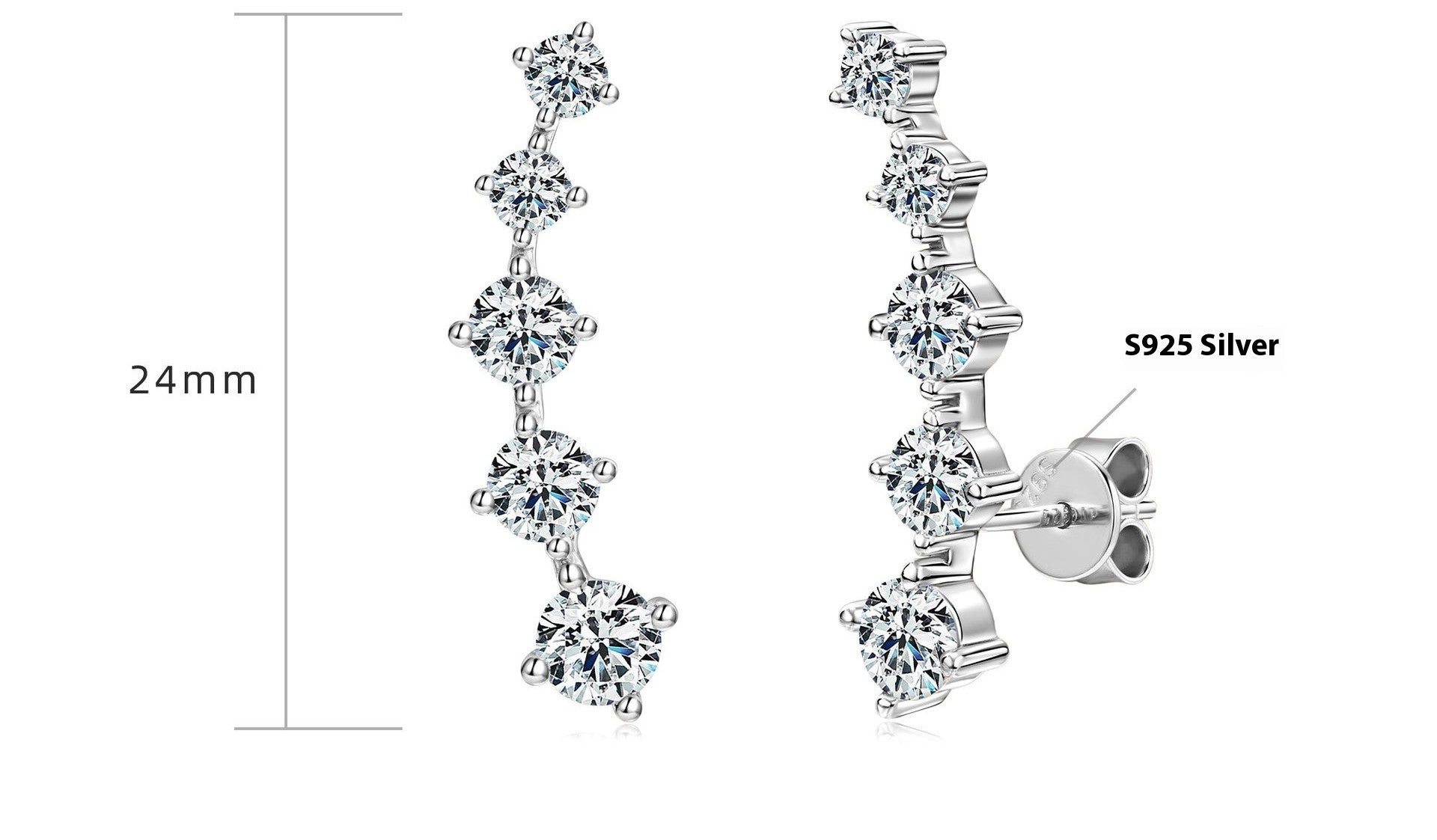 Moissanite Stud Earrings - Sterling Silver Vine Design for Women