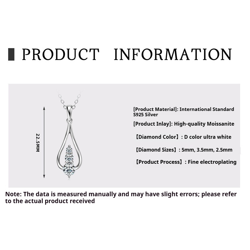 Moissanite Teardrop Pendant Necklace - 925 Sterling Silver Angel Tears Design for Women
