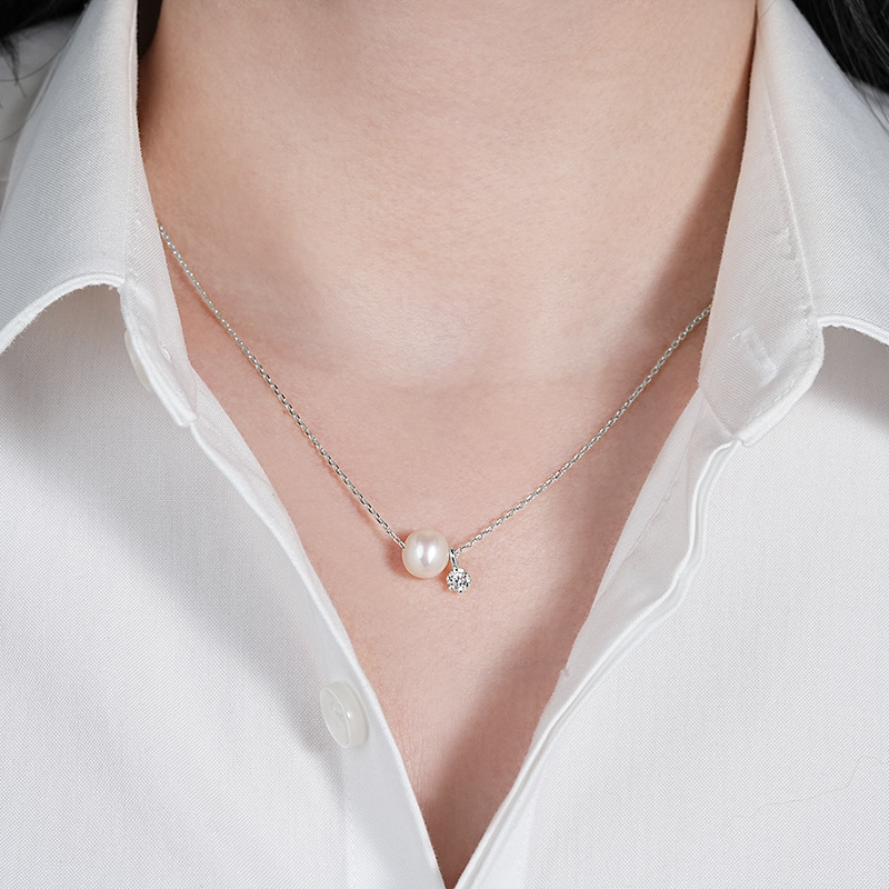Natural Freshwater Pearl Pendant Necklace - French Vintage Style 925 Sterling Silver