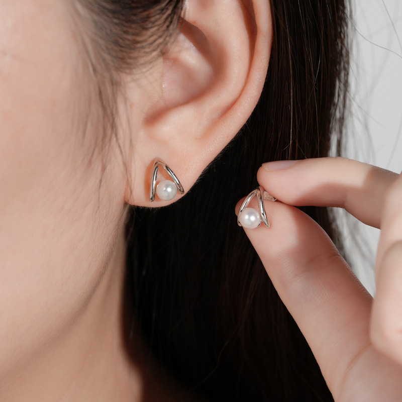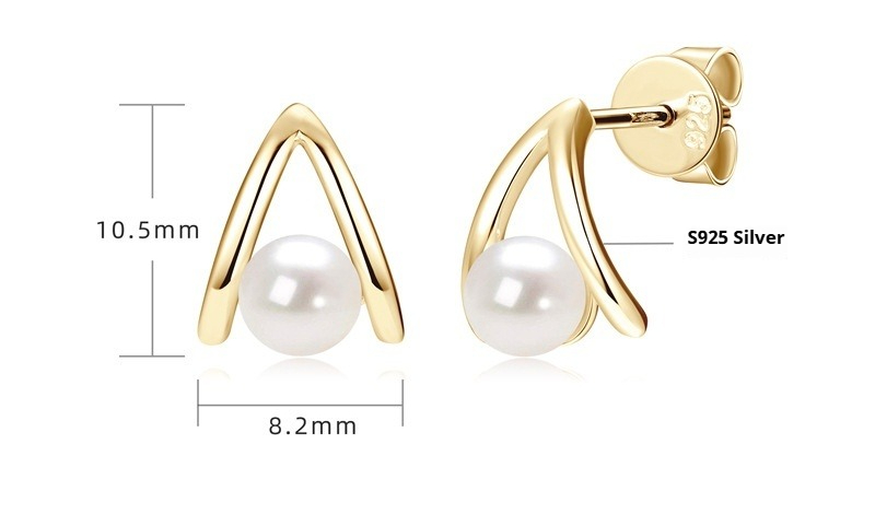 Natural Freshwater Pearl Stud Earrings - 925 Sterling Silver Simple Elegant Jewelry for Women