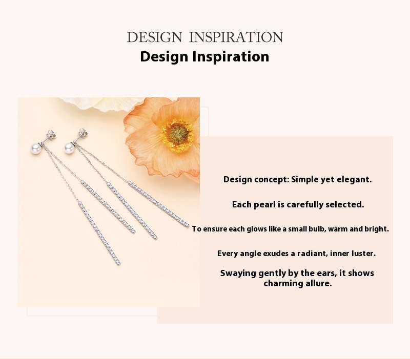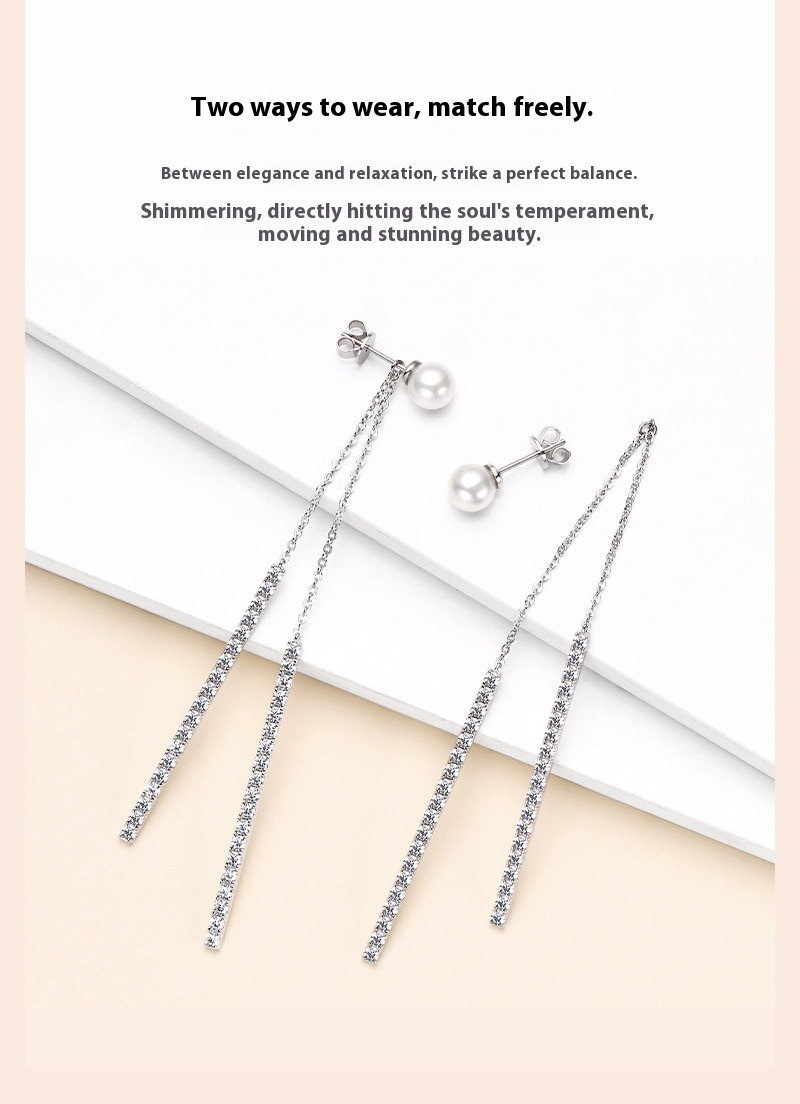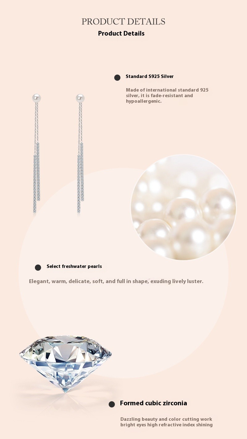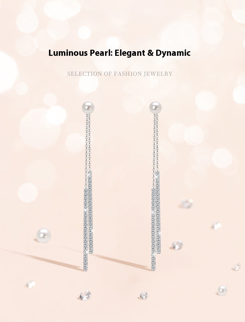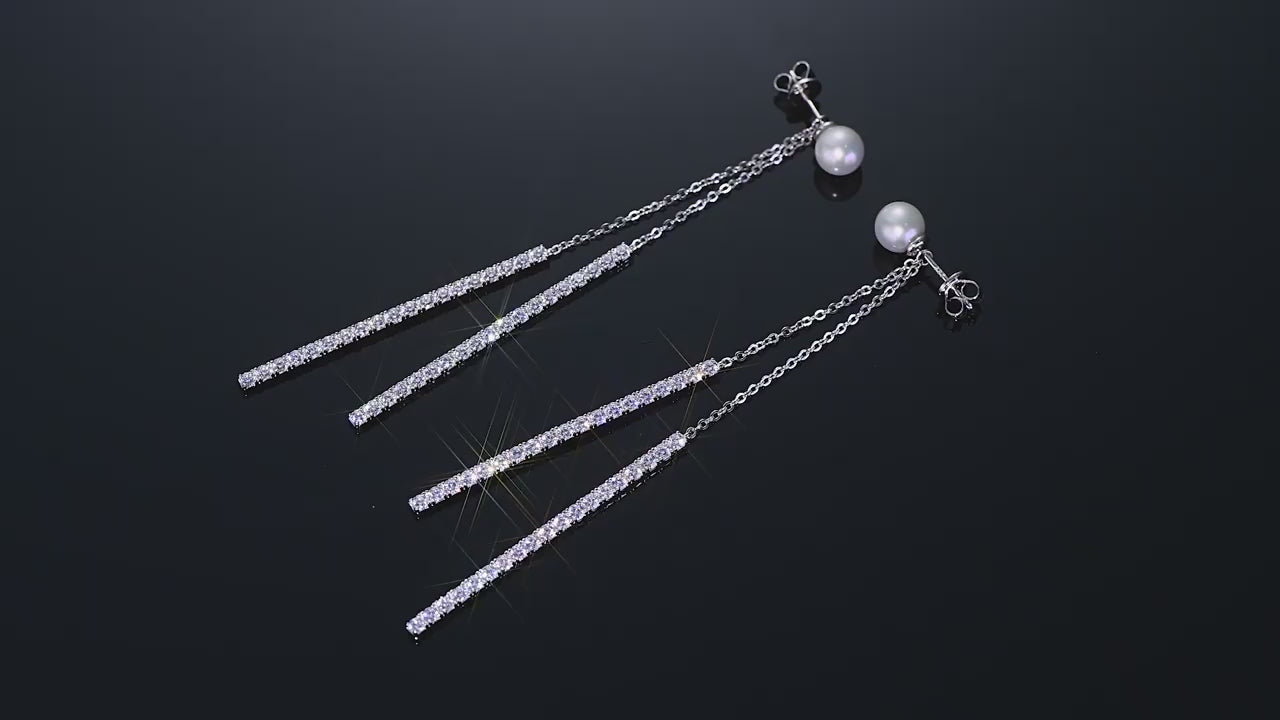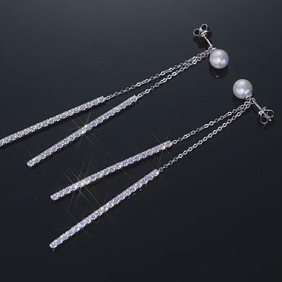 Crystal Zircon Fringed Pearl Drop Earrings - S925 Sterling Silver Long Earrings